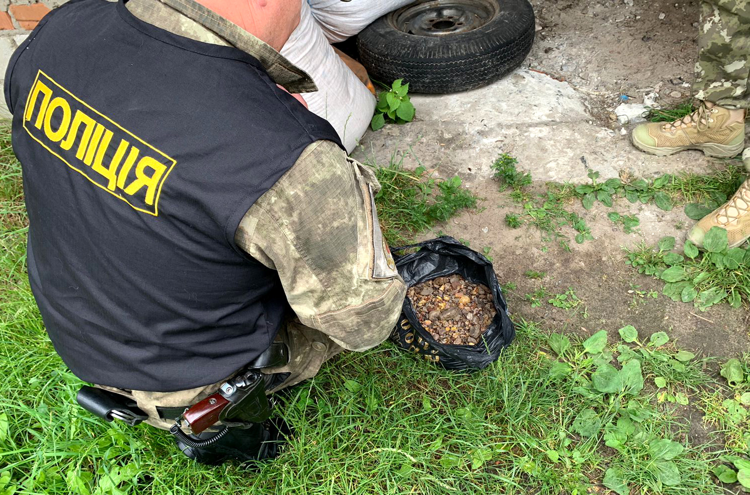 Крім того, під час проведення обшуків за місцями проживання фігурантів кримінального провадження поліцейські виявили два пакети із камінням бурштину різної фракції вагою близько 3,5 кілограмів, електронні ваги, водозабірний та пожежний рукави.