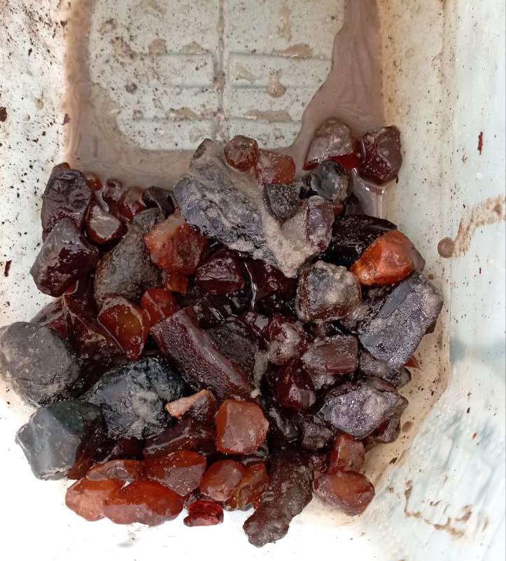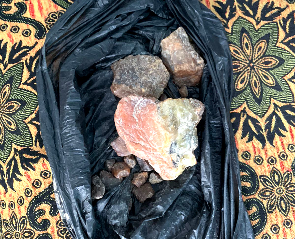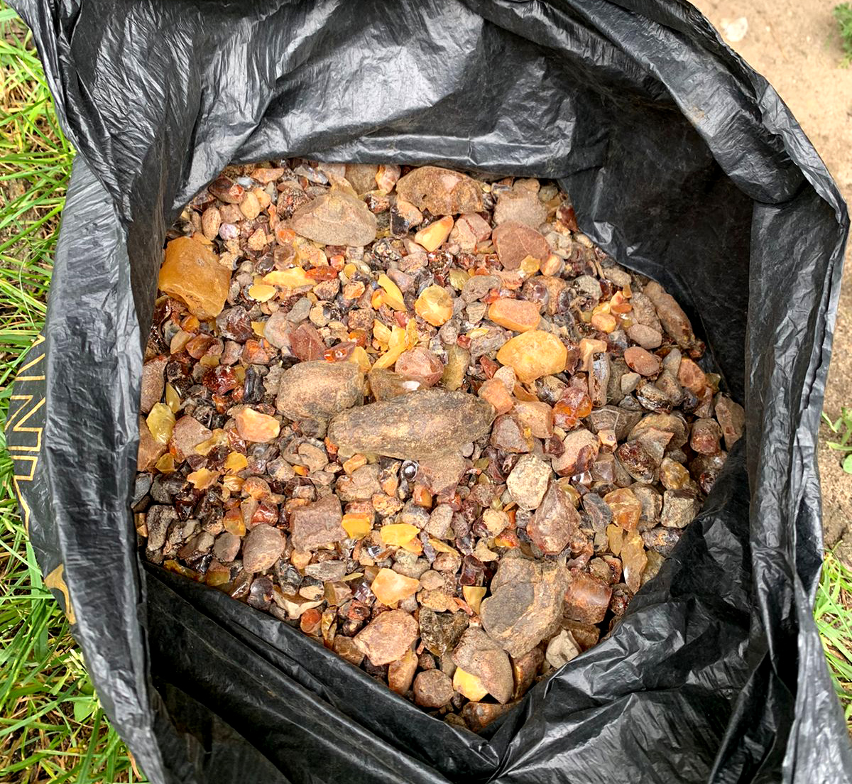 Слідчі вилучили з місця події знаряддя незаконного промислу: мотопомпу, 3 металеві тички, шрайбер, мобільні телефони фігурантів та близько 500 грамів каміння бурштину.