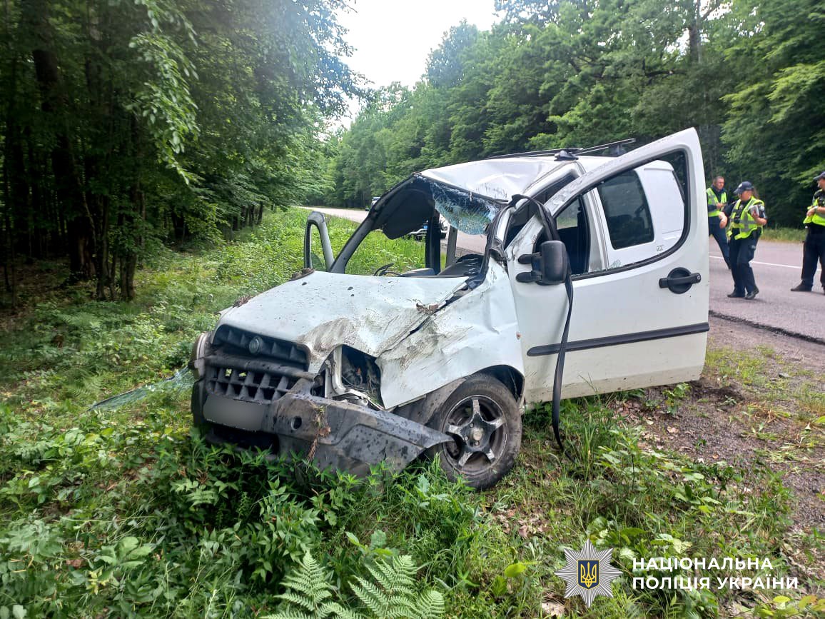 Поліцейські встановили, що 41-річний водій автомобіля «Fiat Doblo» — житель міста Нетішин, не вибрав безпечної швидкості руху, не врахував дорожню обстановку, не впорався з керуванням та допустив перекидання автомобіля.