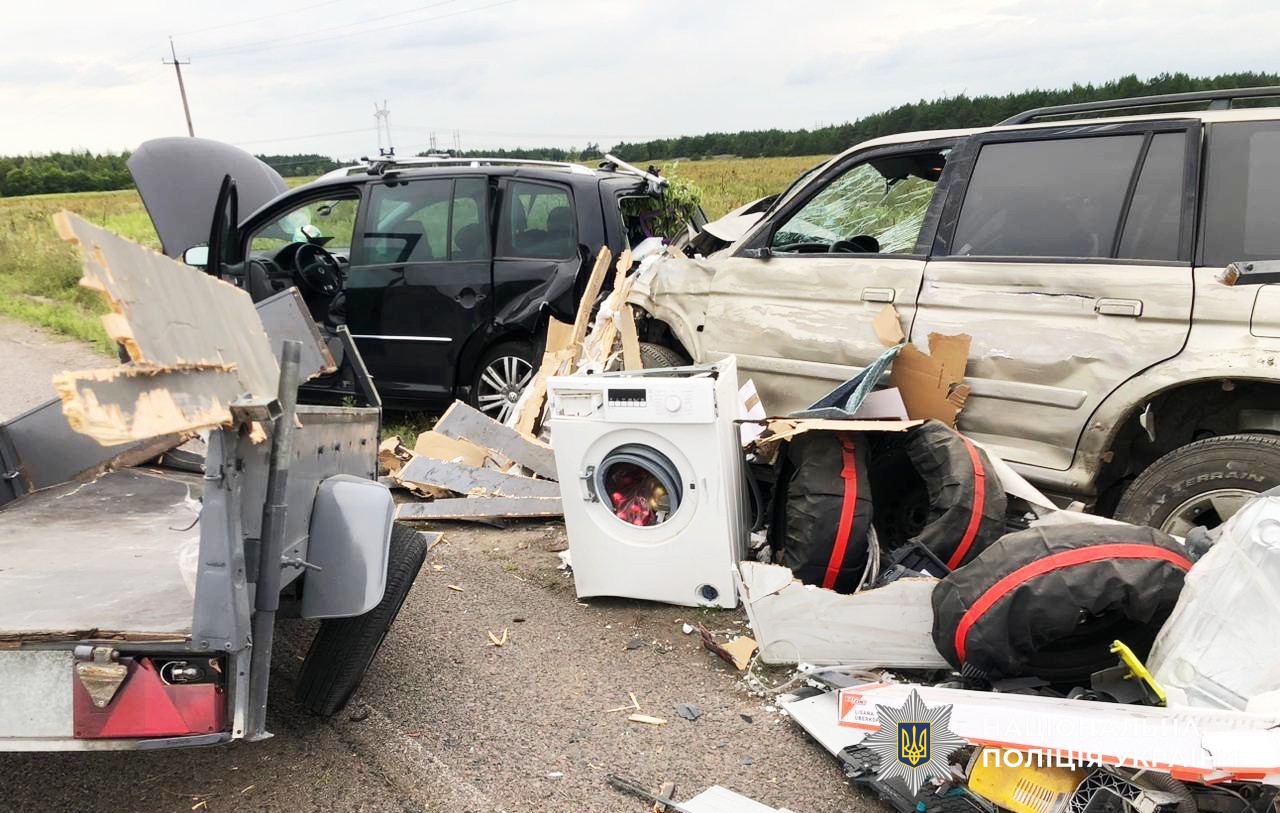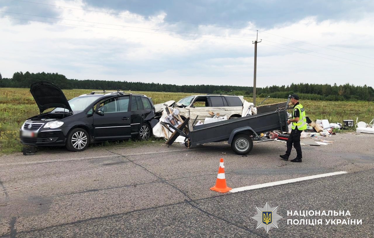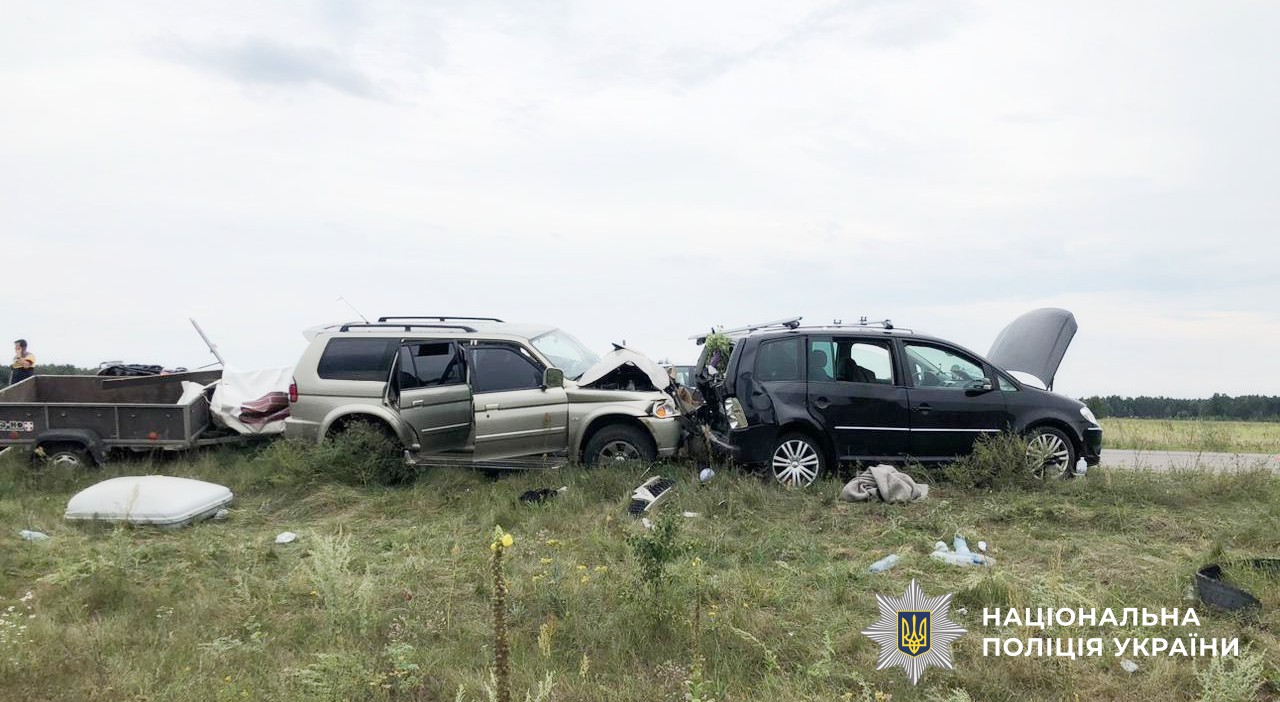 Поліцейські встановили, що водій автомобіля «Volkswagen Touran», 47-річний житель Київської області, виїхав на зустрічну смугу, де допустив зіткнення із позашляховиком «Mitsubishi Pajero Sport» під керуванням 51-річного мешканця села Полиці.