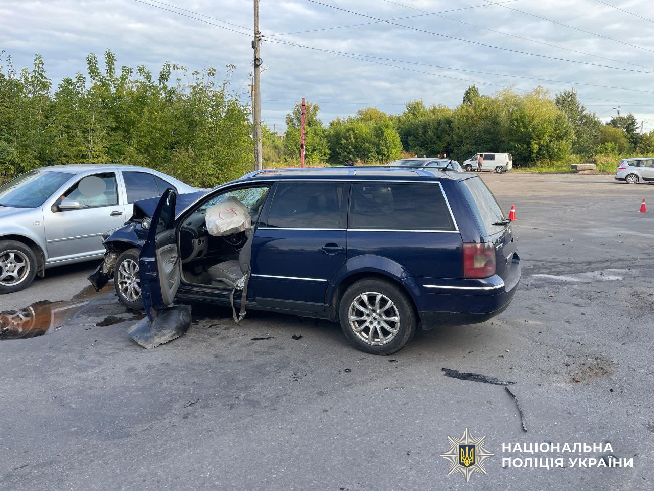 Унаслідок ДТП кермувальниця легковика отримала перелом ключиці та забій грудної клітки, а 38-річний пасажир – закриту черепно-мозкову травму та забої.