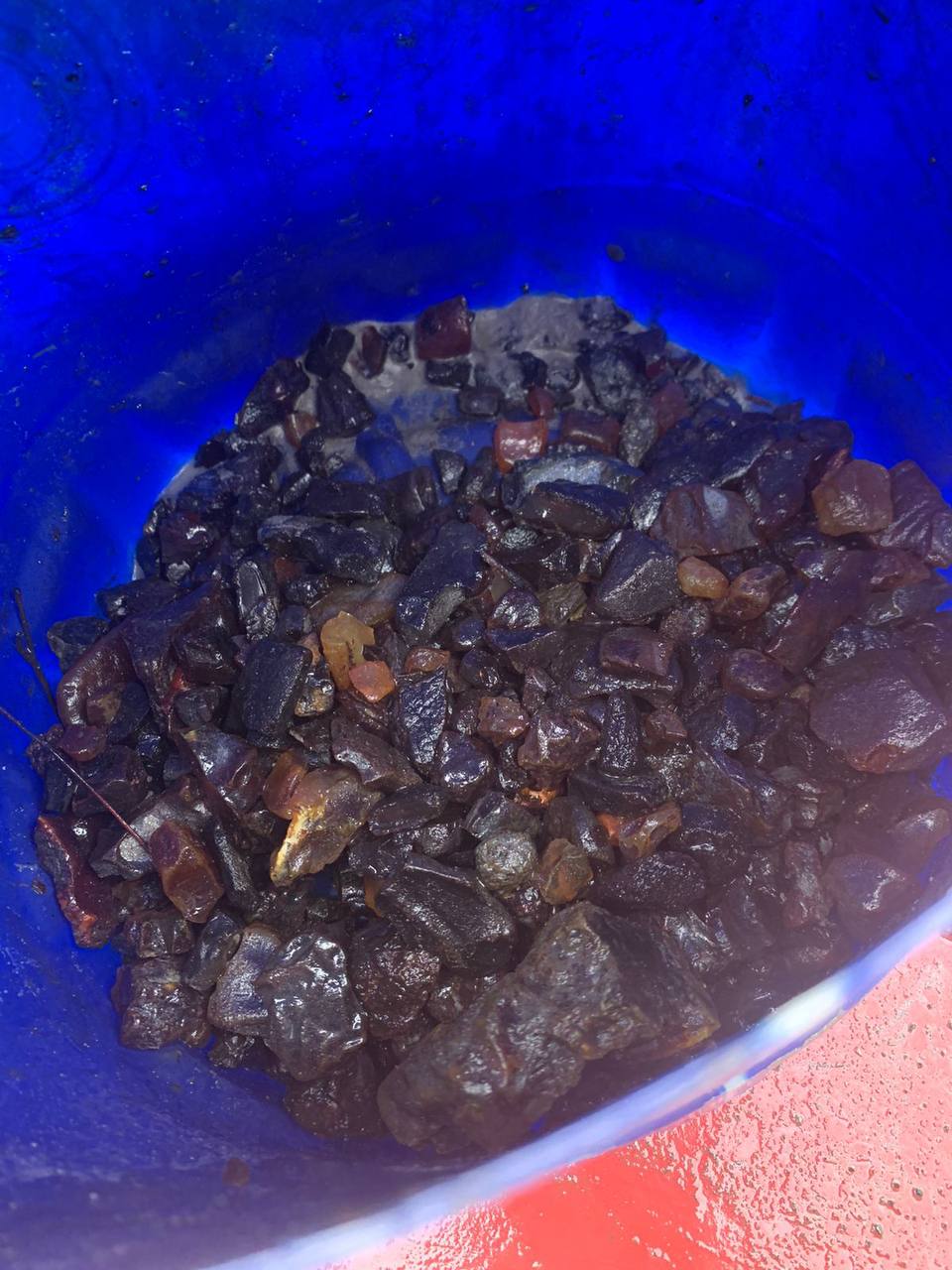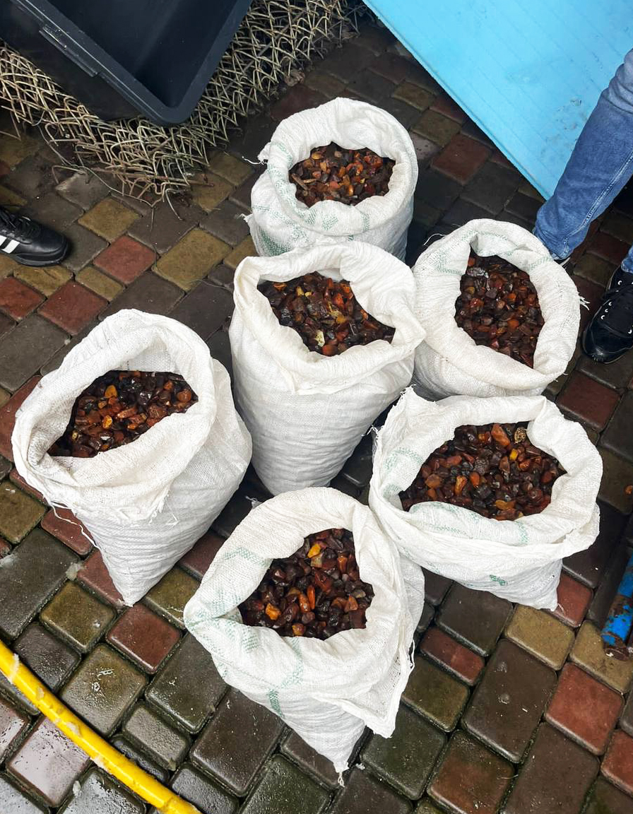 У рамках кримінального провадження, розпочатого за фактом вимагання, відповідно до ухвали суду під час проведення слідчих дій на подвір’ї господарства під металевим накриттям поліцейські виявили шість мішків наповнених бурштином-сирцем загальною вагою майже 80 кілограмів.
