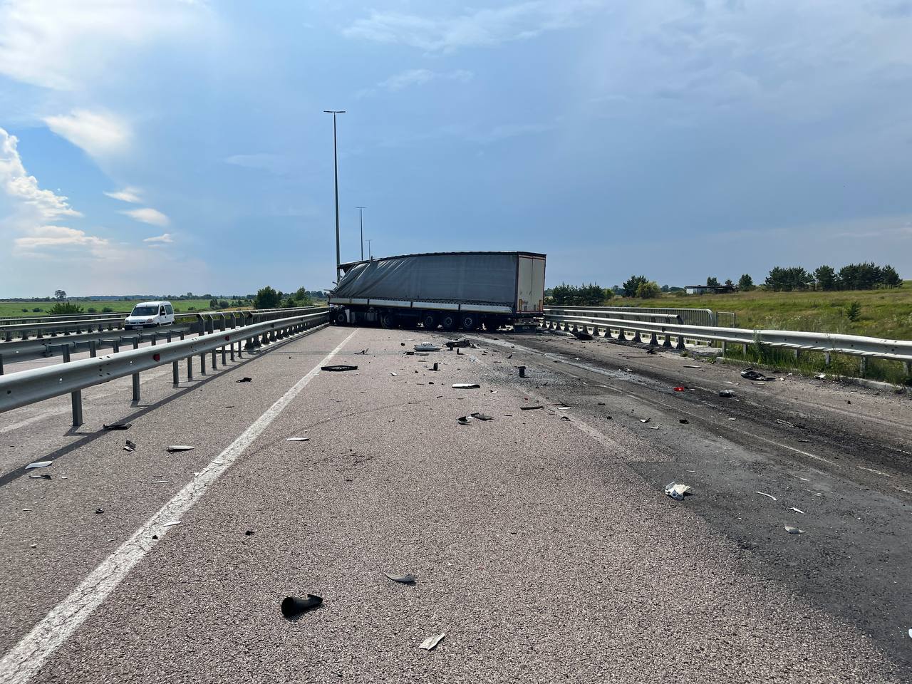 Рух на цій ділянці дороги заблокований. Втім, патрульні поліцейські забезпечили додаткову смугу для об’їзду та регулюють потік авто.
