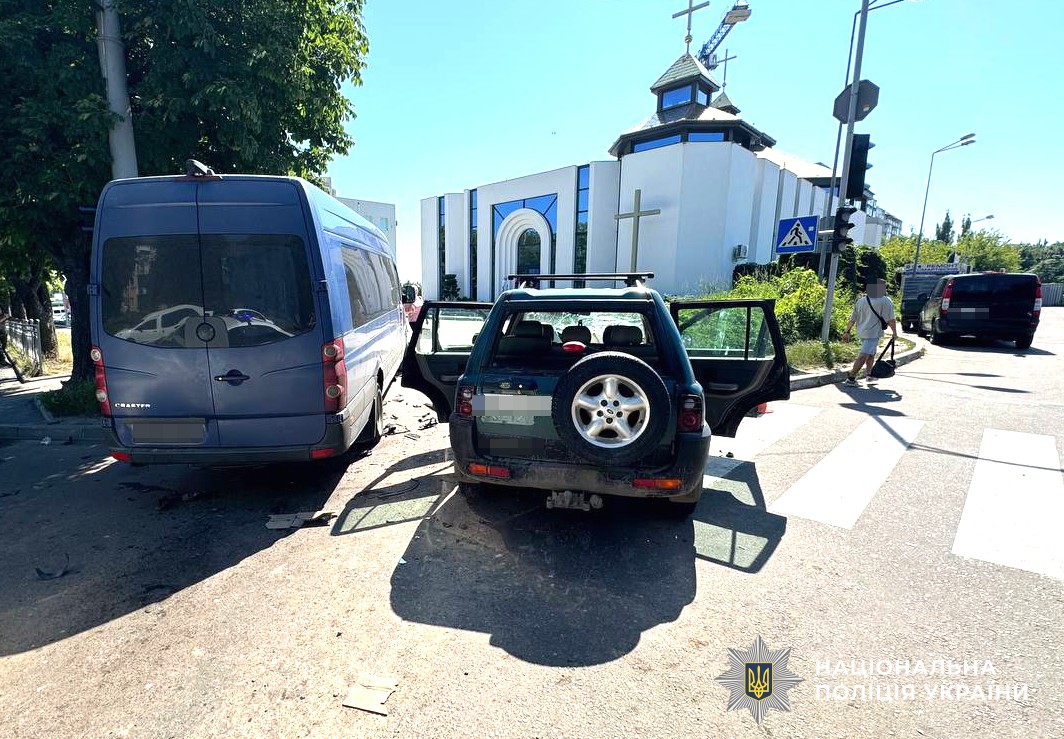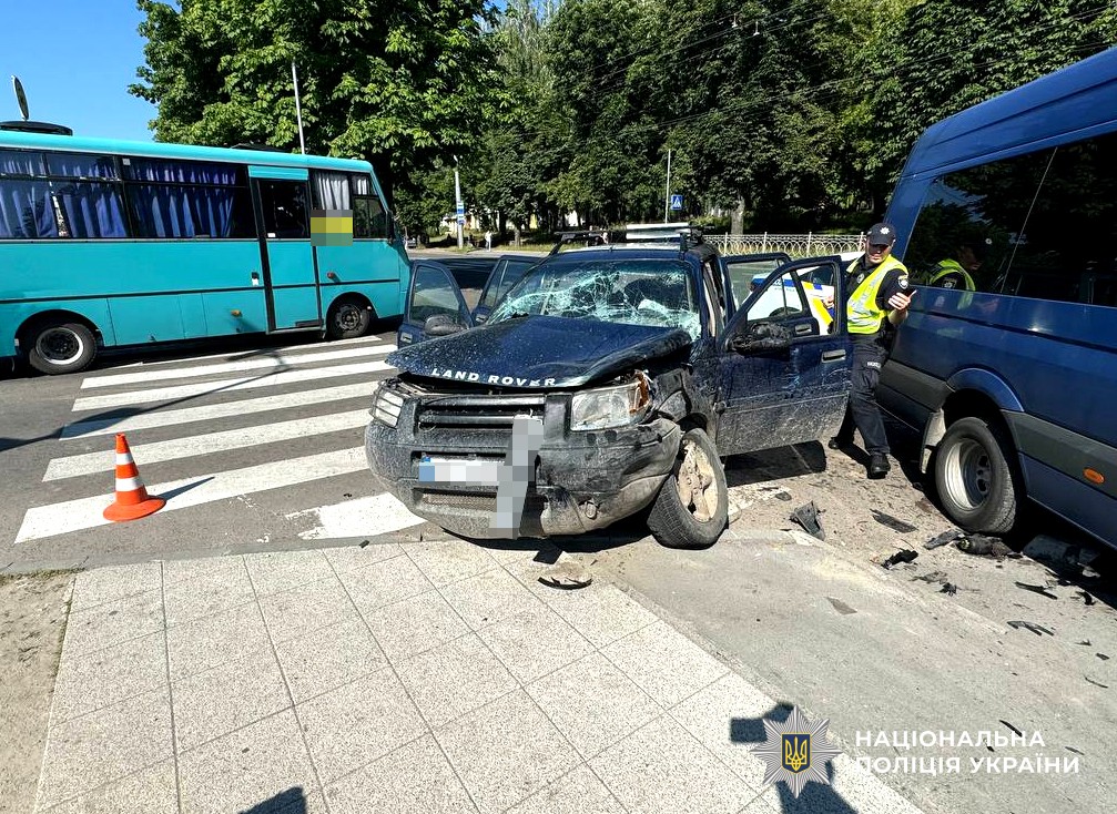 Поліцейські на місці події встановили, що 34-річний водій мікроавтобуса «Volkswagen Crafter» — маршрутного таксі сполученням, виконуючи маневр повороту ліворуч, не надав перевагу в русі та допустив зіткнення із позашляховиком «Land Rover» під керуванням 23-річного жителя Харківщини.