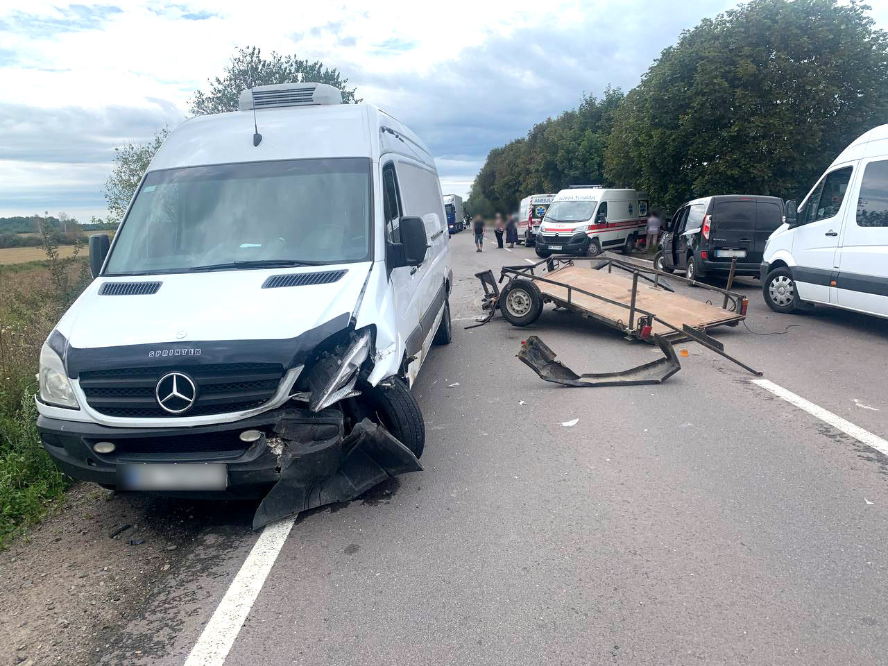 Поліцейські на місці події попередньо встановили, що під час руху в спецавтомобіля «МАЗ» від’єднався причеп, який викинуло на смугу зустрічного руху, де в нього в’їхав мікроавтобус «Mersedes Benz».