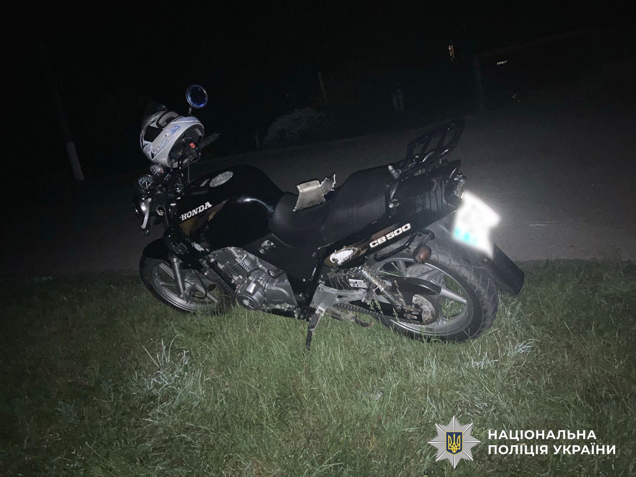 Поліцейські встановили, що о 23:40 дев’ятого червня у селі Яполоть 16-річний житель села Жалин, водій мотоцикла «GEON 200», не вибрав безпечної швидкості руху, не врахував дорожню обстановку та допустив зіткнення з попутним мотоциклом «Honda 500», яким керував 17-річний житель села Перетоки.