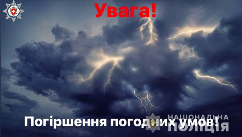 Правоохоронці наголошують громадянам не залишати транспортні засоби під деревами, не відвідувати парки та за можливості залишатися вдома.