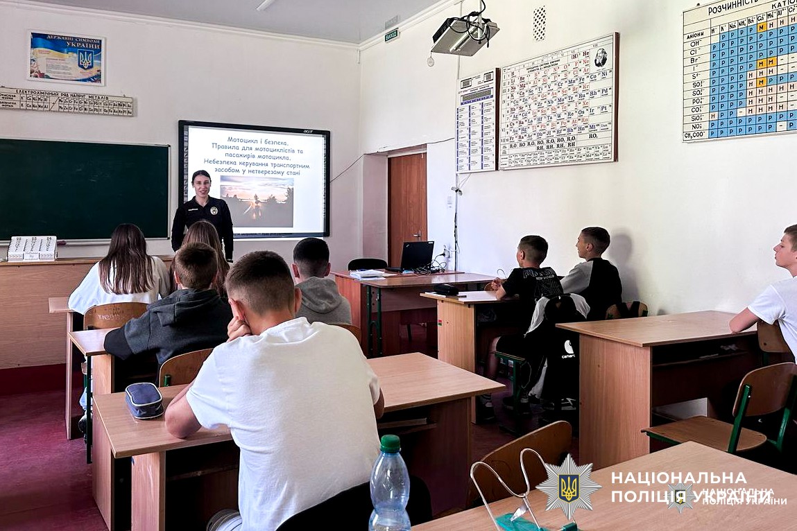 «Увага мотоцикл»: офіцери служби освітньої безпеки під час інтерактивних занять наголошують ліцеїстам на дотриманні ПДР
