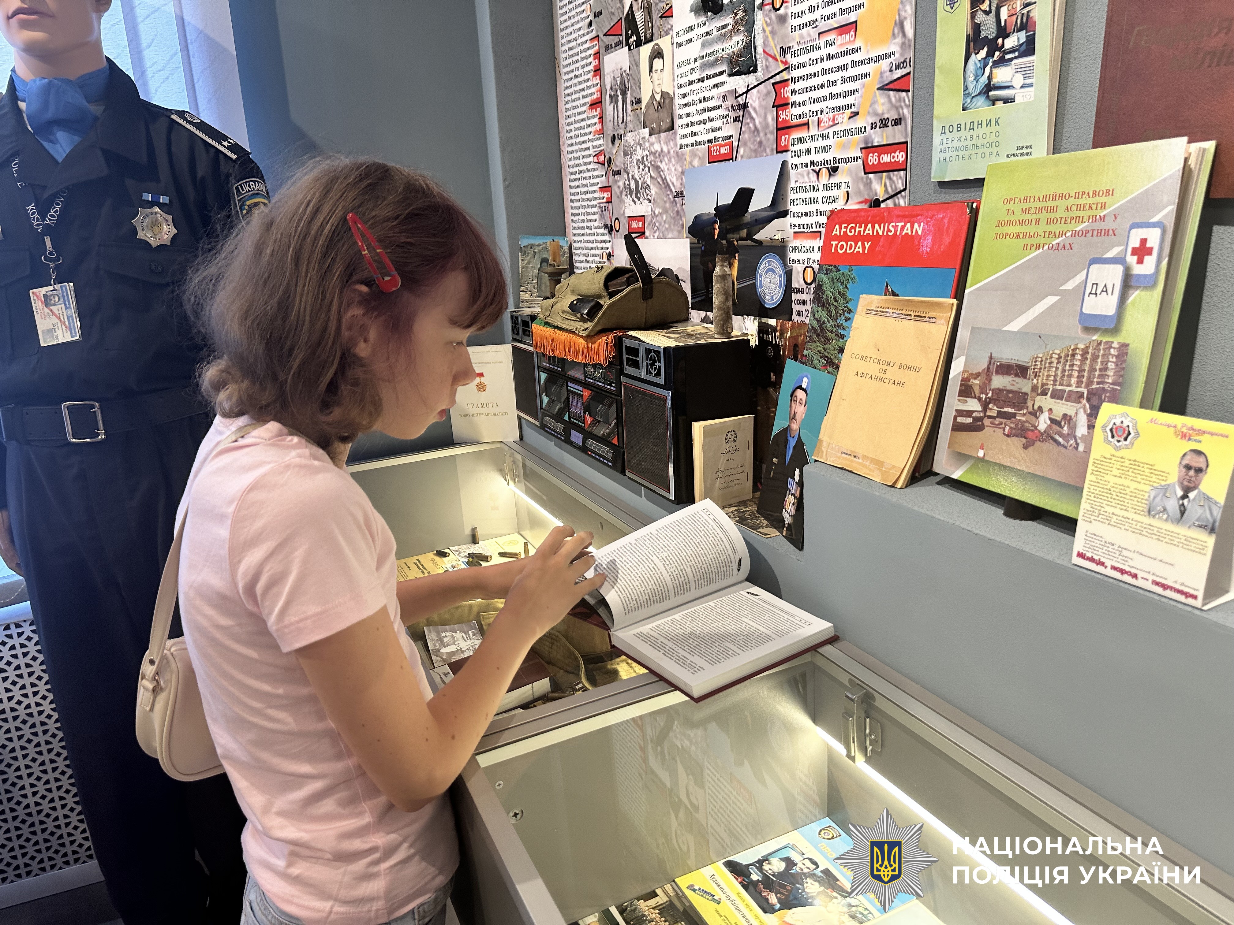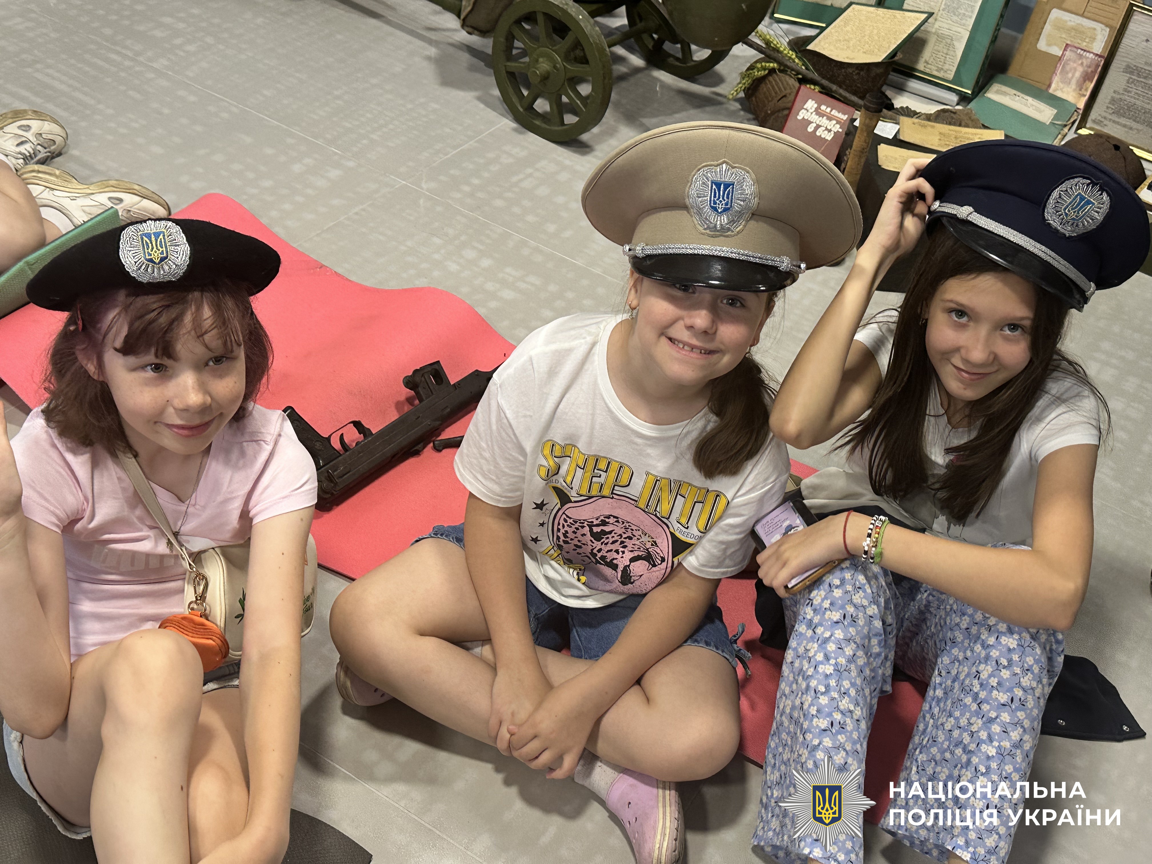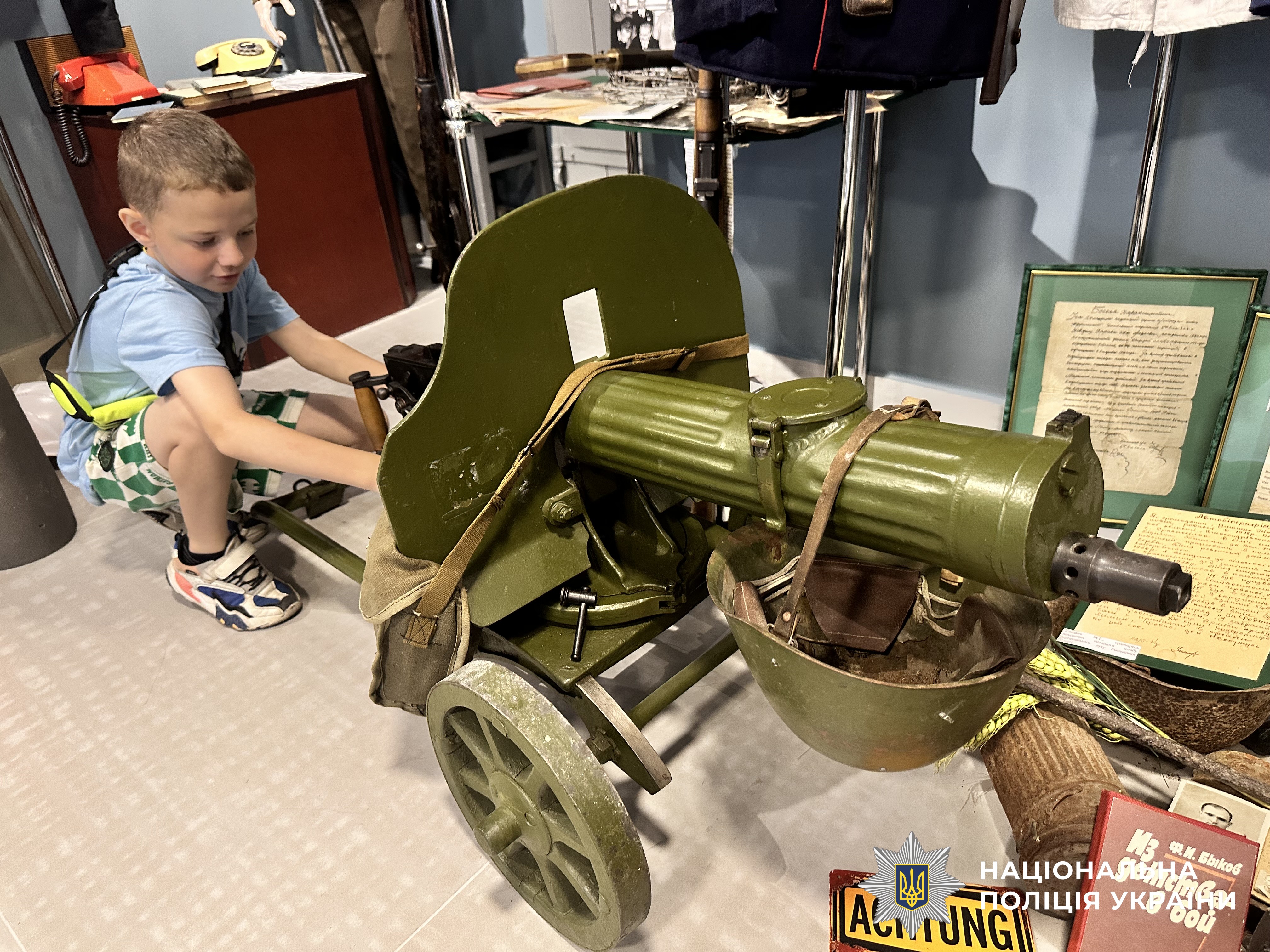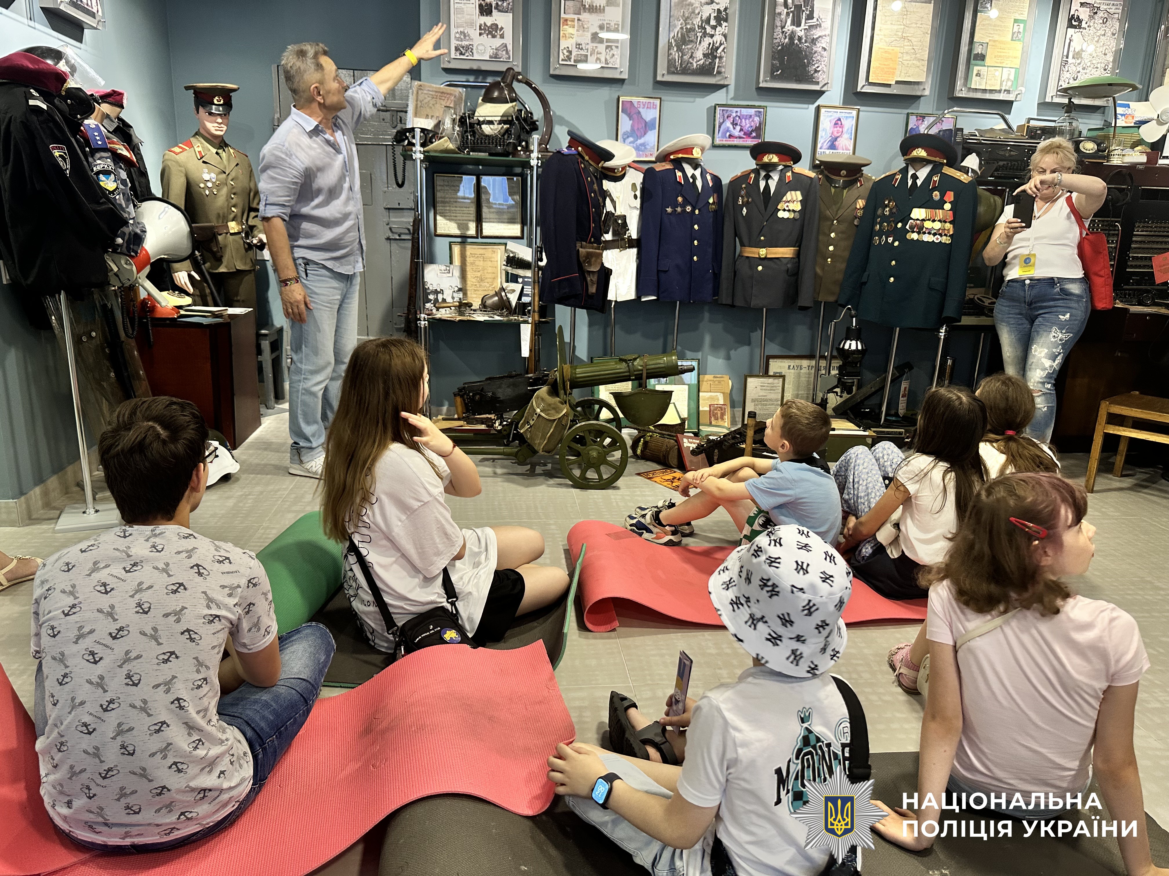 Поліцейські провели для малечі екскурсію відомчим музеєм, де вони мали можливість дізнатися про роботу правоохоронців у різні часи. Зокрема, діти могли порівняти експонати поліцейського екіпірування із сучасними спеціальними засобами.