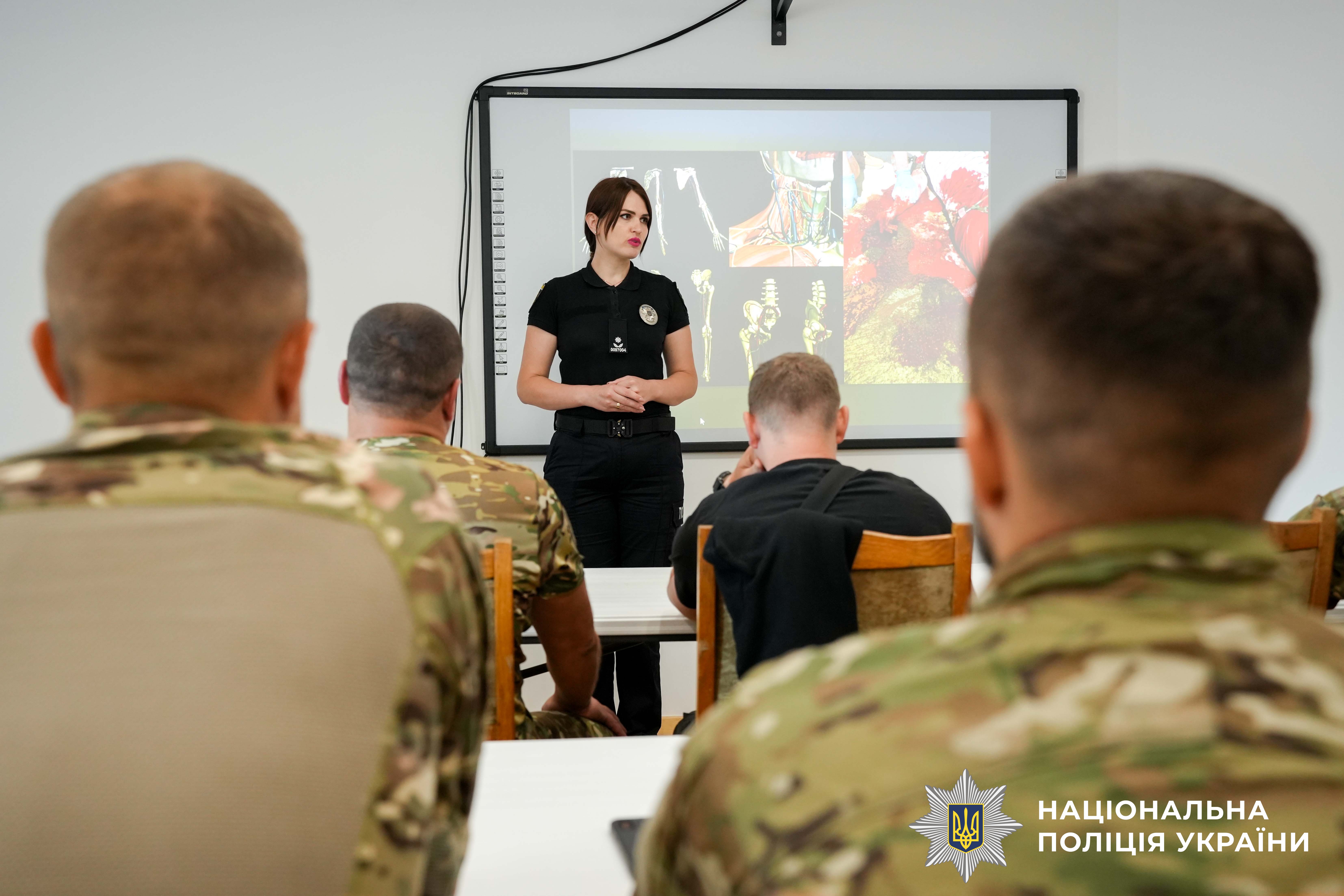 «На полі бою знання з тактичної медицини надважливі. Завдяки цьому ви зможете врятувати не тільки своє життя, а й побратима, а також мінімізуєте негативні наслідки травми до евакуації потерпілого, — звернулася до бійців батальйону керівниця управління кадрового забезпечення ГУНП Яна Лісниченко. — Тож вдосконалюйтеся, адже фахова та вчасна допомога може знадобитися не лише під час бойових дій, а й цивільному населенню».