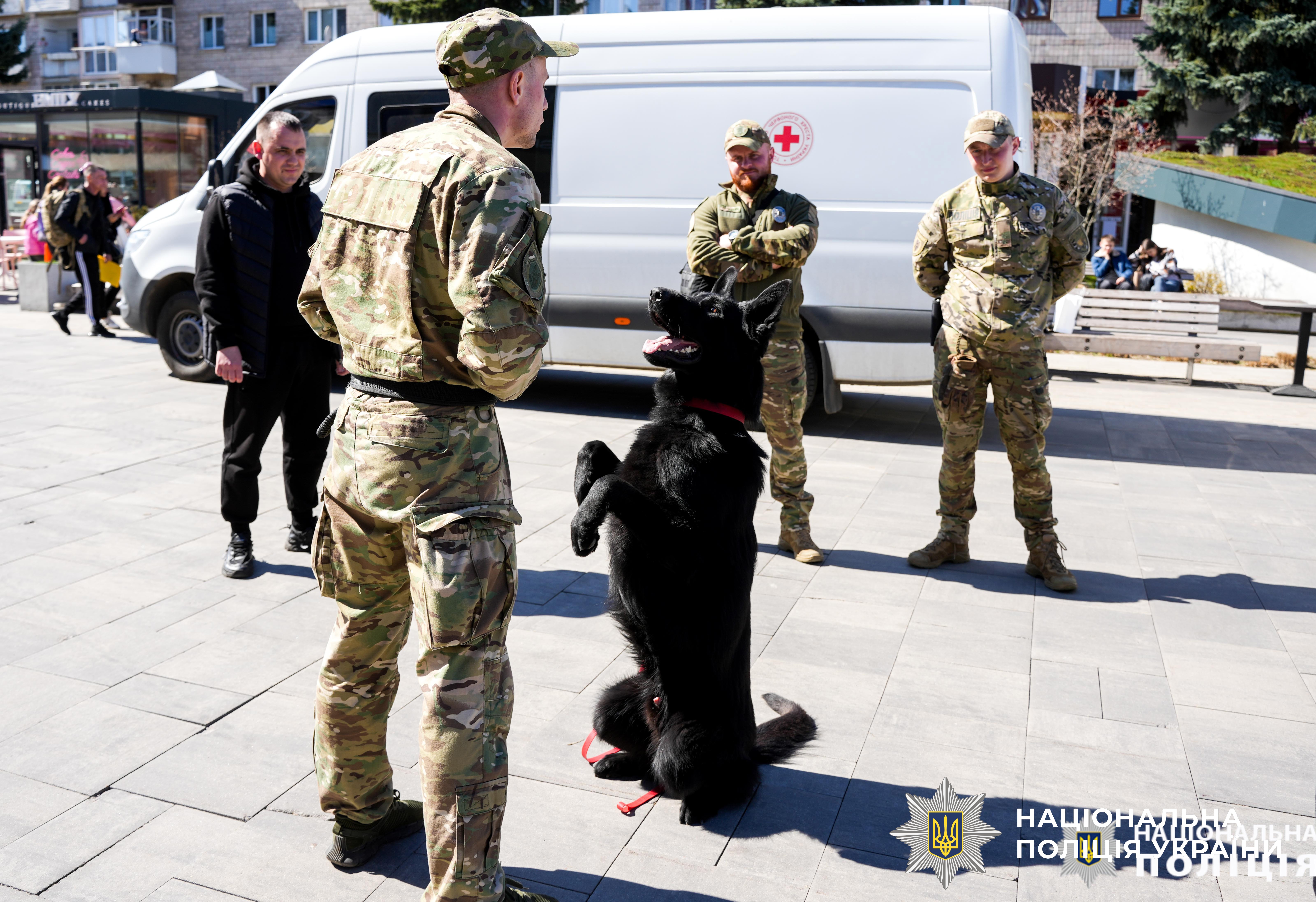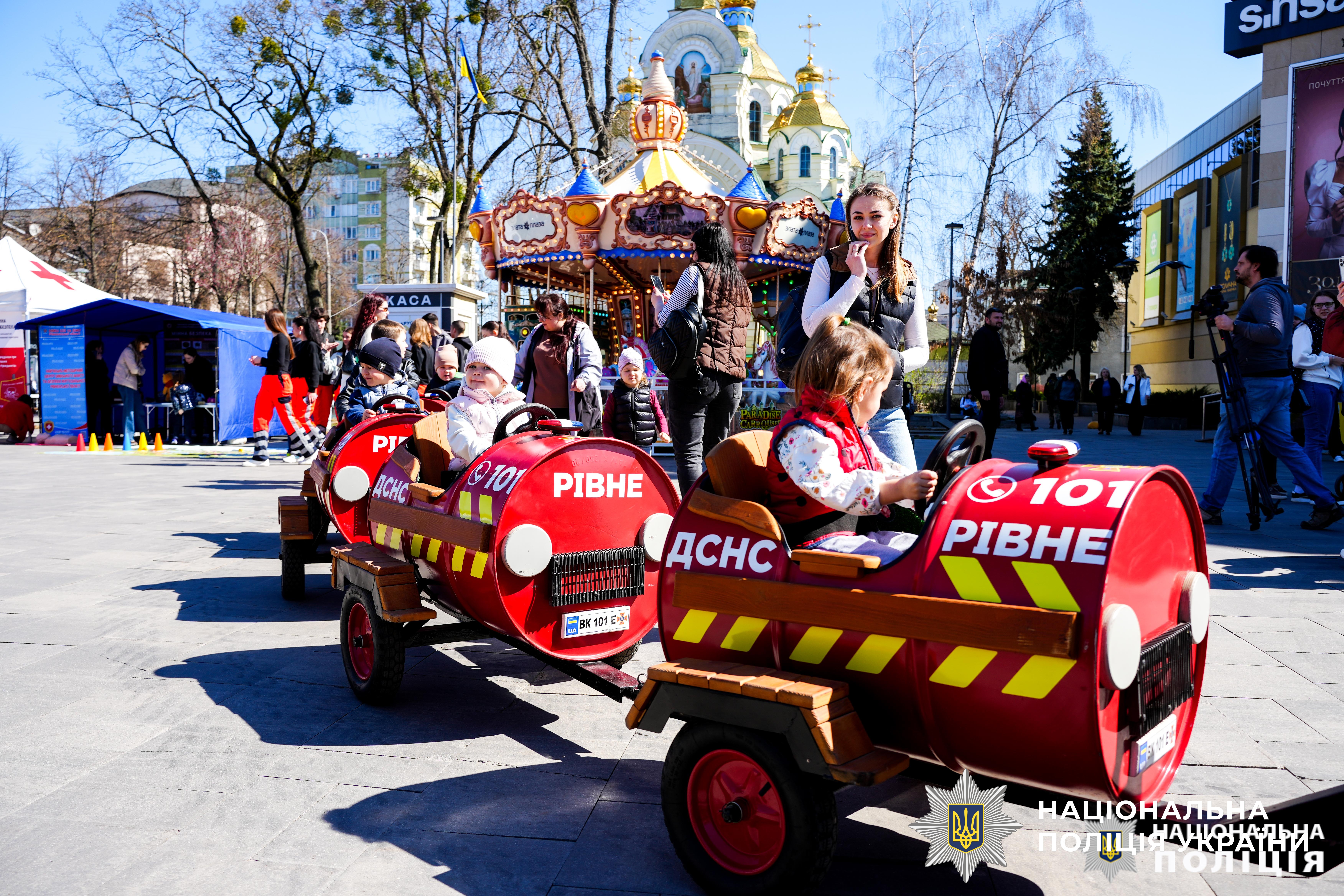 Тематичне заняття під відкритим небом відбулося сьогодні, четвертого квітня, за ініціативи рятувальників. Також у заході взяли участь представники МКЧХ, вибухотехніки та кінологи Рівненщини. На площі правоохоронці облаштували спеціальні тематичні локації та презентували спецтехніку.