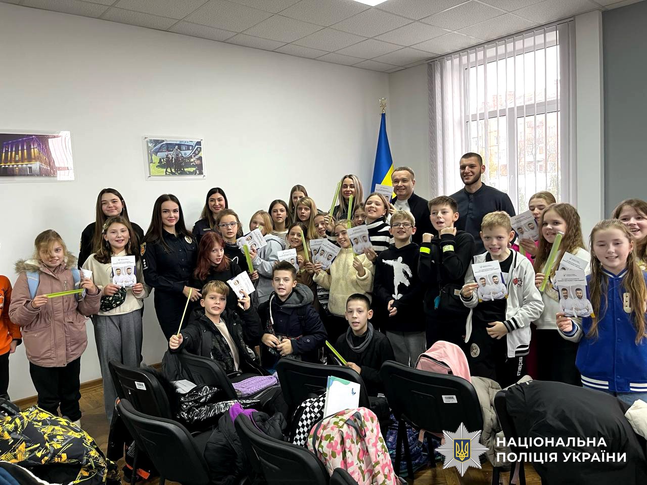 Наостанок зустрічі дітям подарували світловідбиваючі елементи, аби у темряві вони були помітні на дорозі та пам’ятали, що дотримання правил дорожнього руху — це також їхній обов’язок.