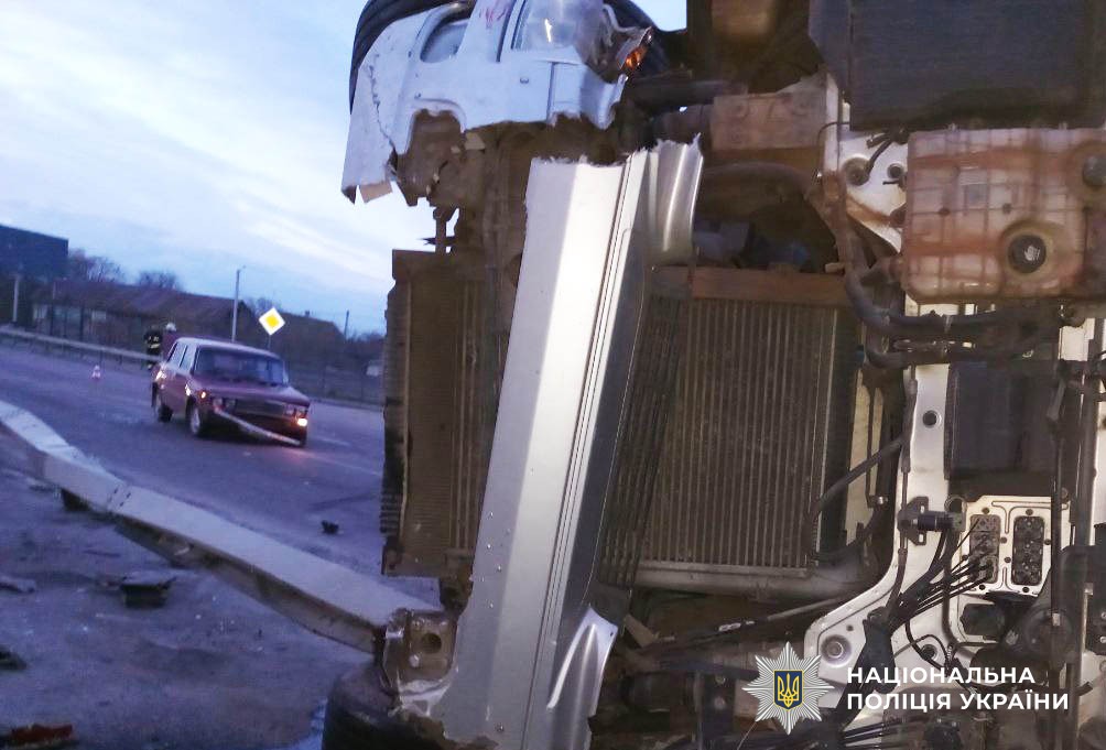 Попередньо відомо, що внаслідок зіткнення вантажного автомобіля та «ВАЗ» травми отримав водій легковика: його доставили до лікарні, де він проходить обстеження.