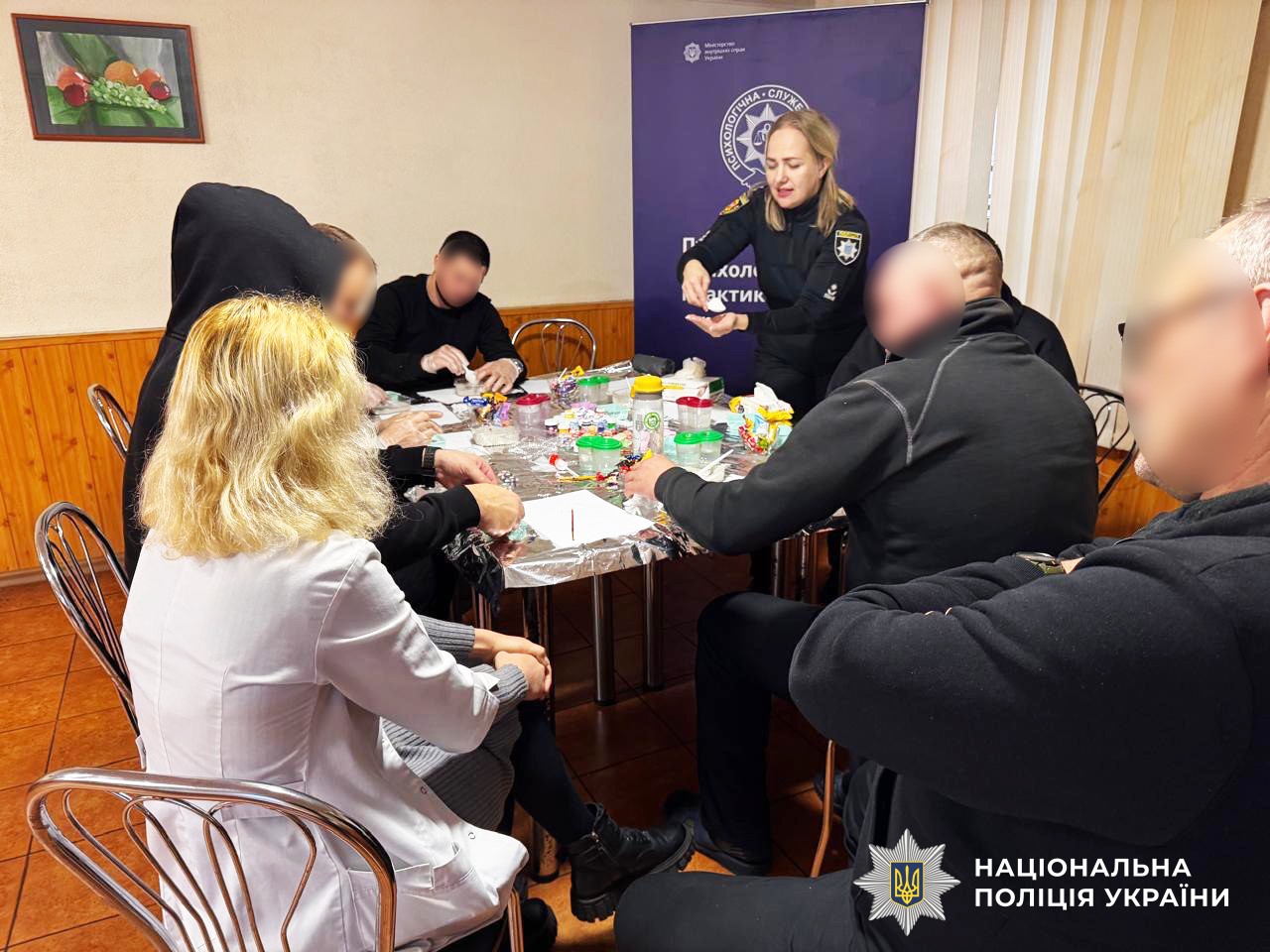 У Рівненській області відбулася чергова арттерапевтична зустріч для поранених захисників – бійців Національної поліції та Національної гвардії. Захід, організований поліцейськими психологами, об’єднав учасників у творчому процесі, що допоміг їм віднайти гармонію, підтримку та внутрішню рівновагу.