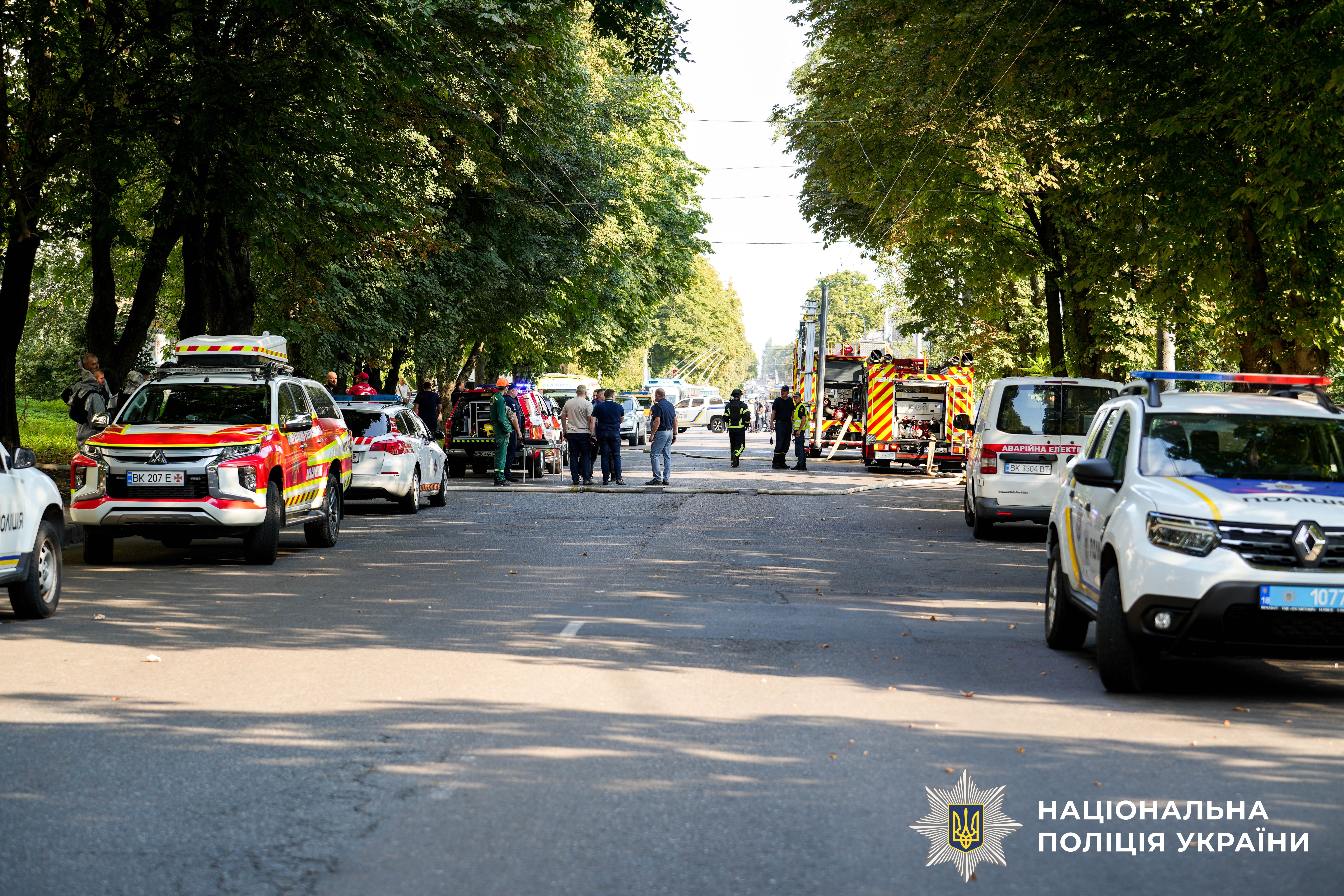 Рятувальники загасили пожежу. На місці події працювали співробітники СБУ регіону у співпраці із слідчо-оперативною групою Рівненського РУП й ГУНП, криміналістичною лабораторією та вибухотехніками.