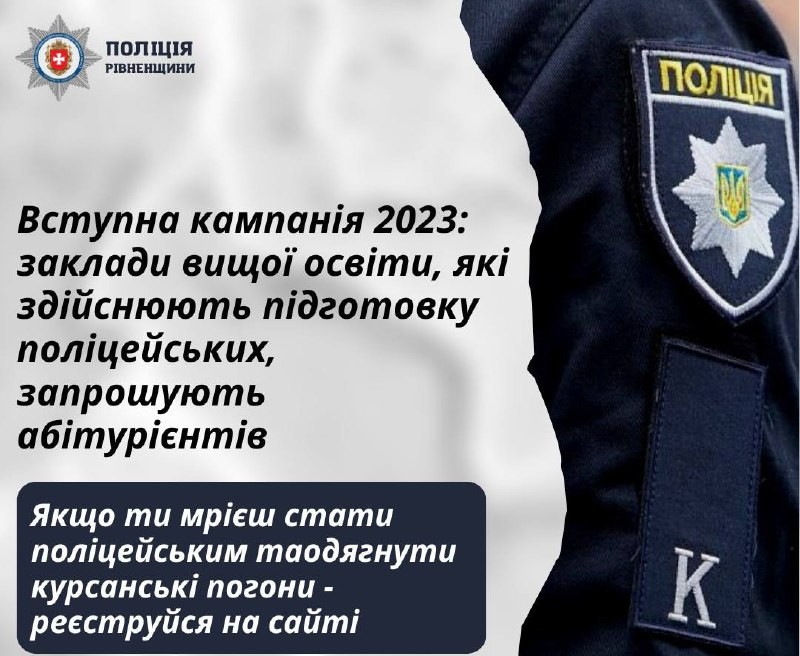 Вступна кампанія 2023: заклади вищої освіти, які здійснюють підготовку поліцейських, запрошують абітурієнтів