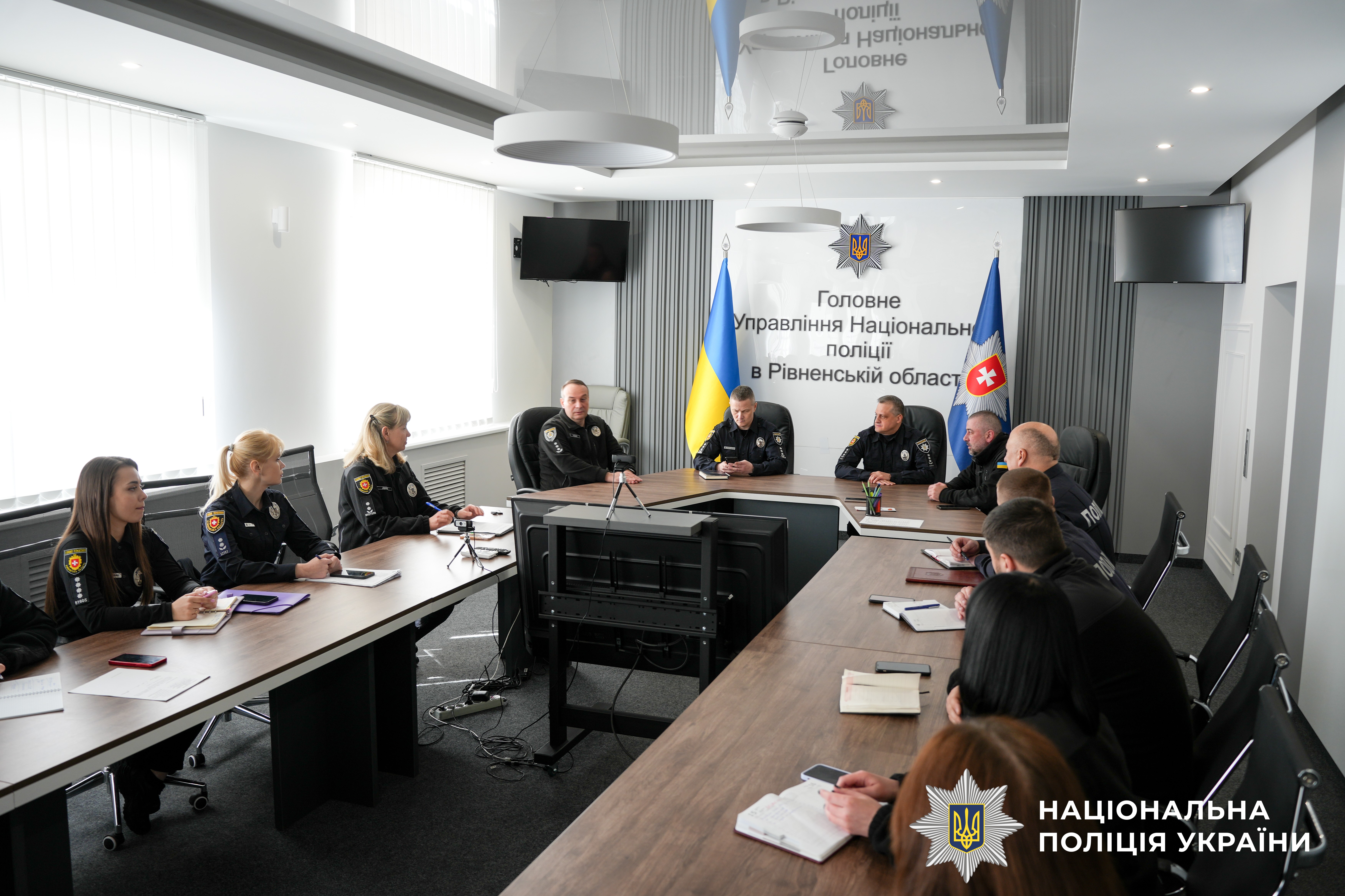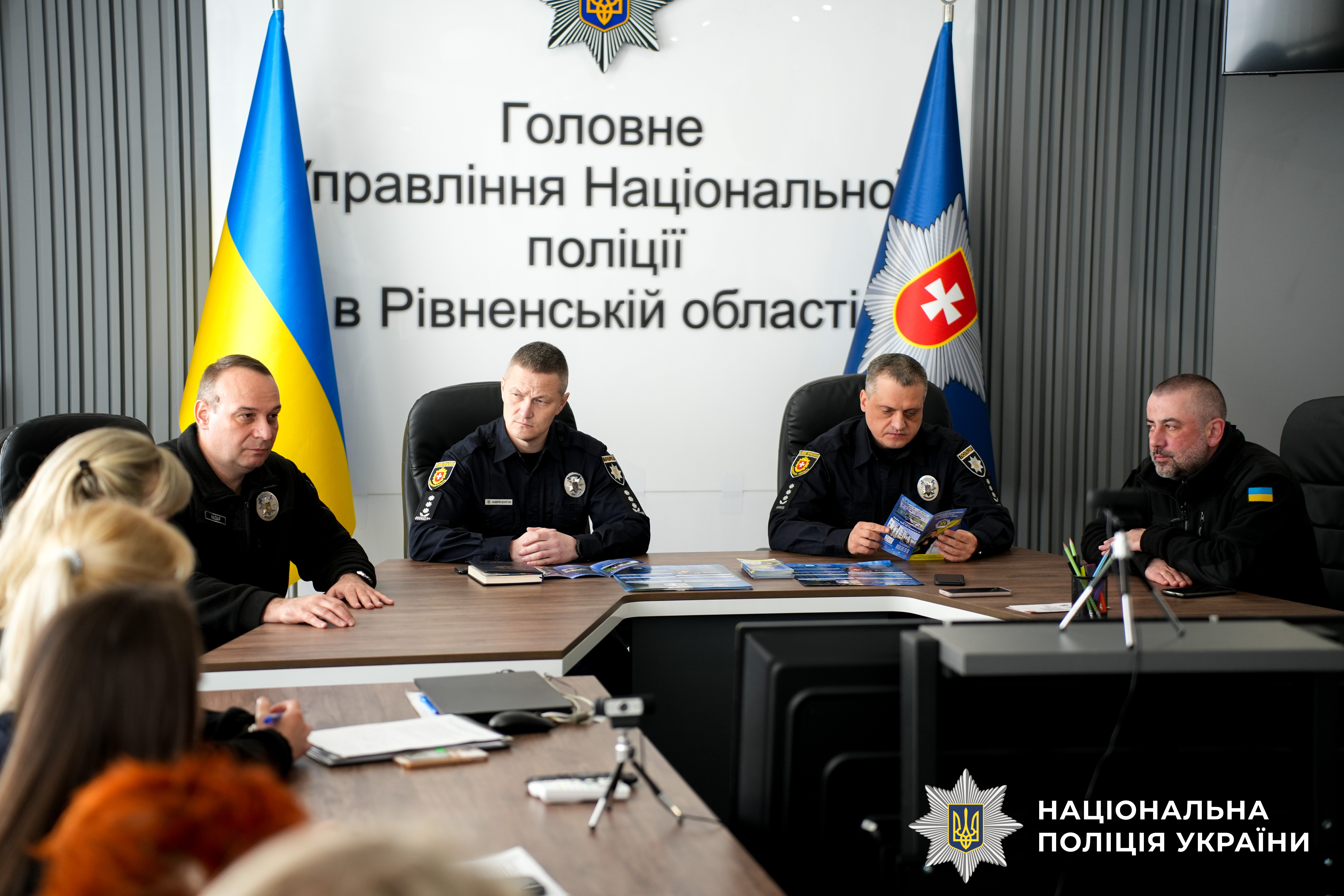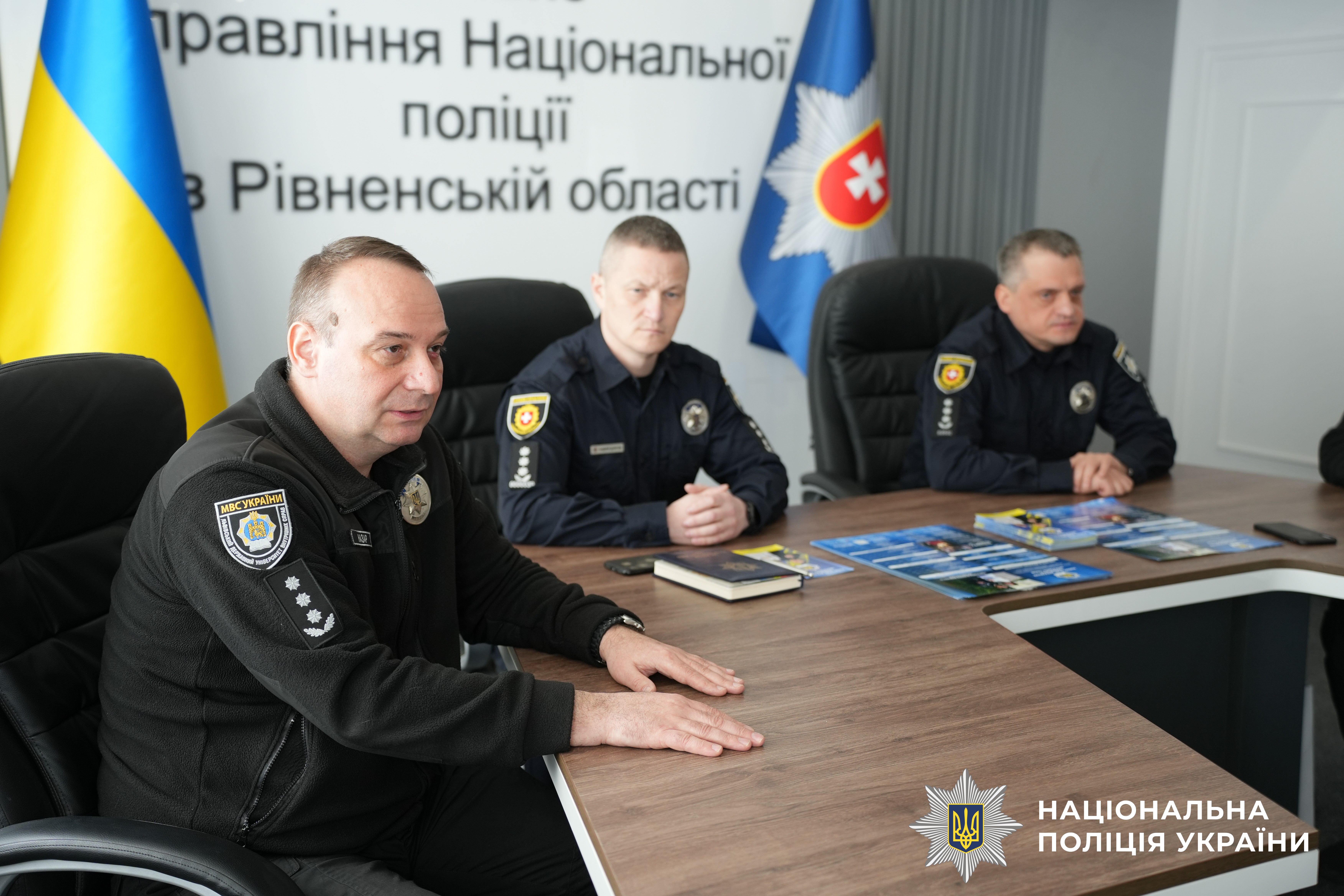 На зустрічі були присутні проректор вишу Мар’ян Гурковський та директор Інституту з підготовки фахівців для підрозділів Національної поліції Юрій Назар, заступник начальника ГУНП в Рівненській області Павло Баранник, керівник управління кадрового забезпечення Андрій Долгов.