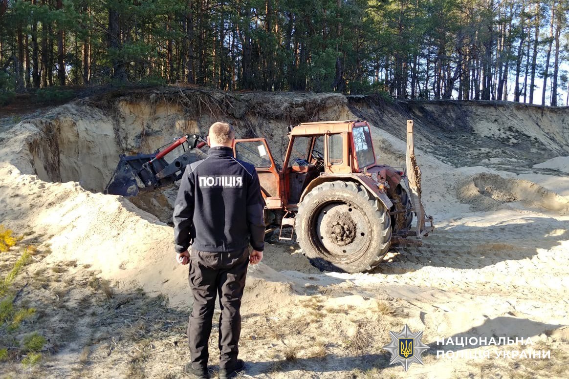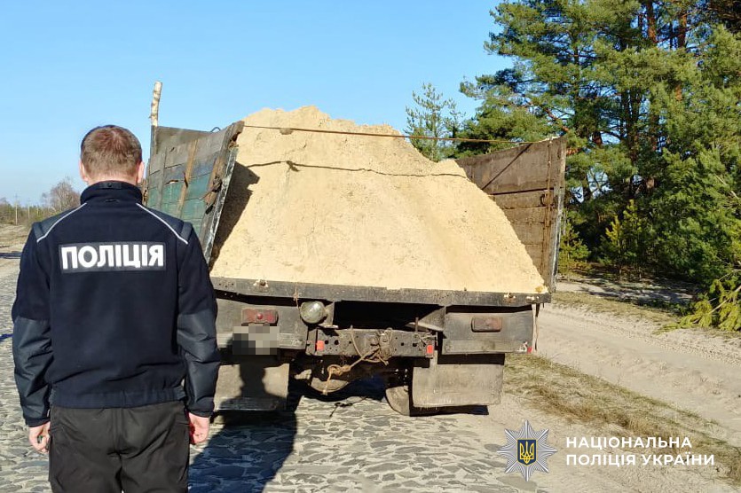 Поліцейські ВП № 2 (смт Зарічне) Вараського РВП спільно з прикордонниками 16 лютого близько 16:50 у кар’єрі неподалік села Кухче побачили вантажівку із причепом та ще один причеп, на які трактор-екскаватор навантажував пісок.