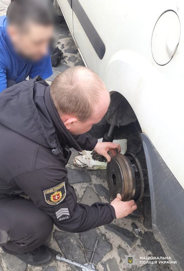 З'ясувалось, що фургон не може продовжувати рух, оскільки гальмівні колодки заблокували колесо.