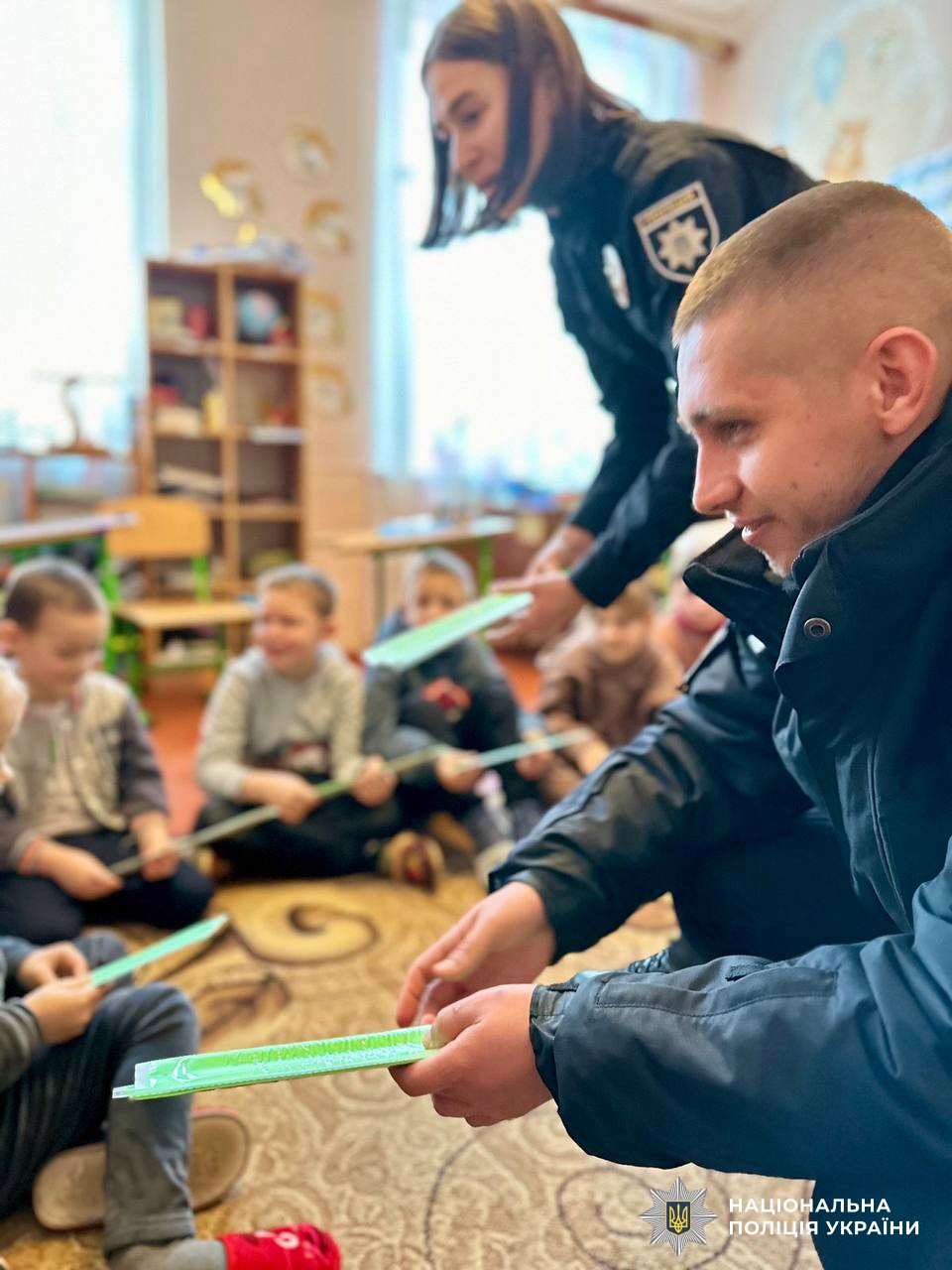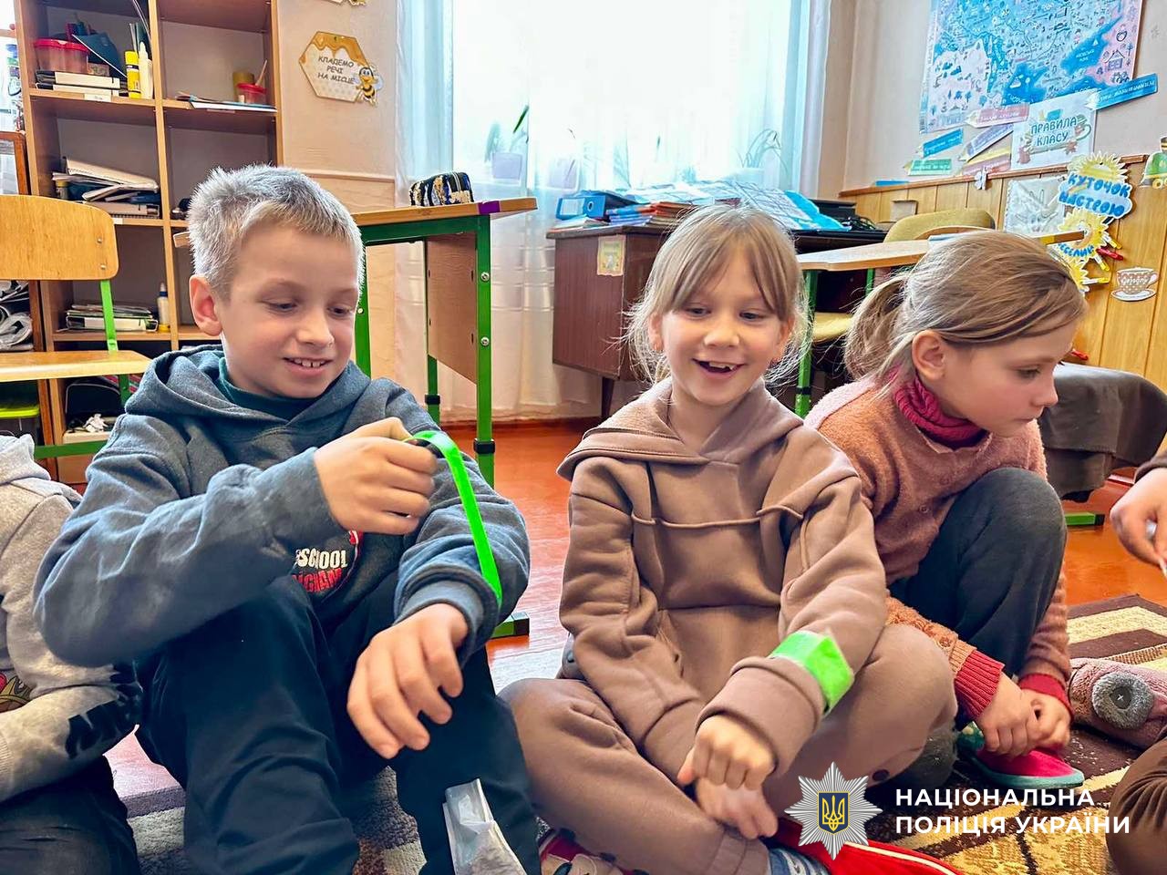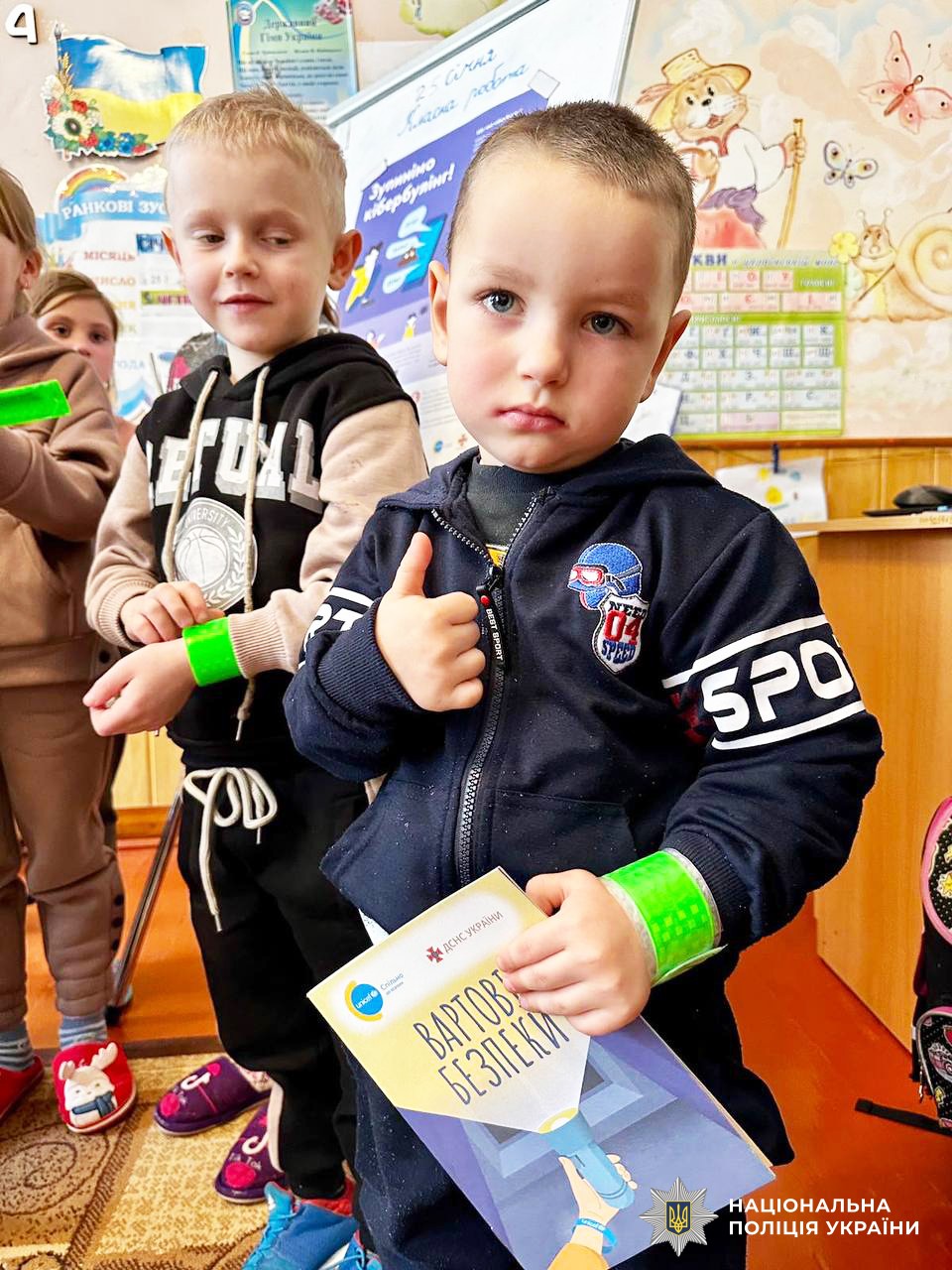 Наприкінці зустрічей дітки отримали від поліцейських корисні подаруночки: світловідбиваючі елементи.