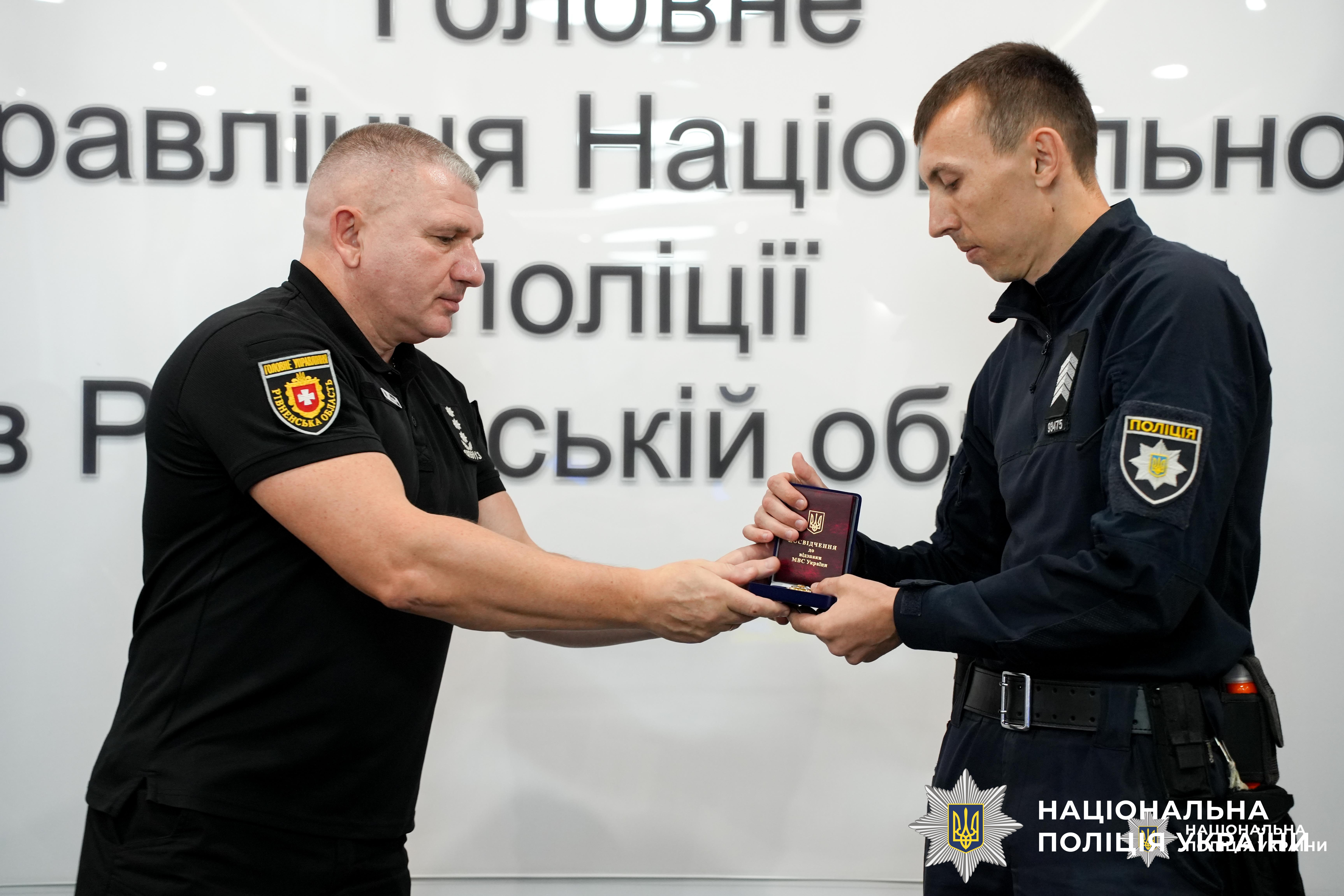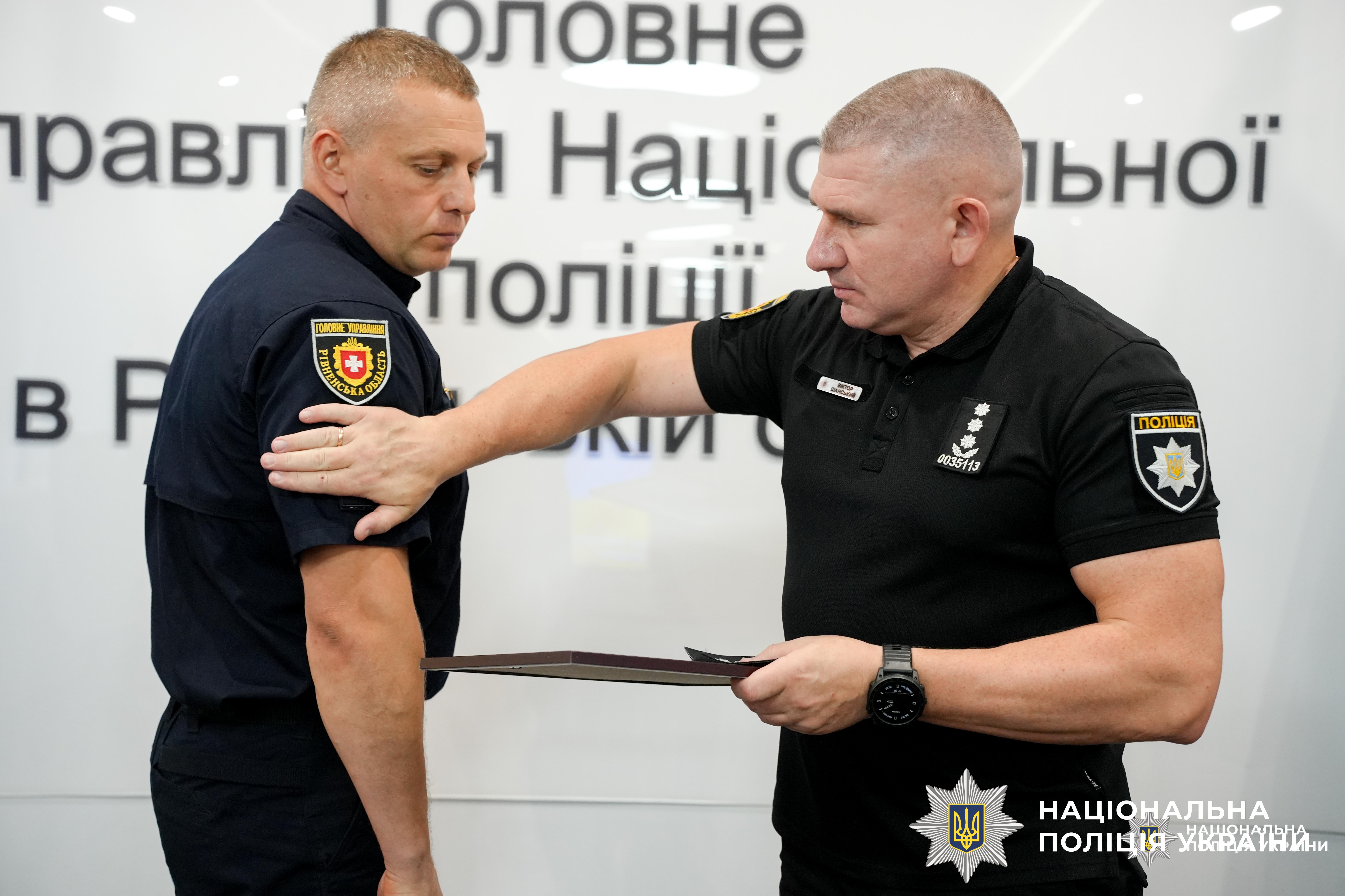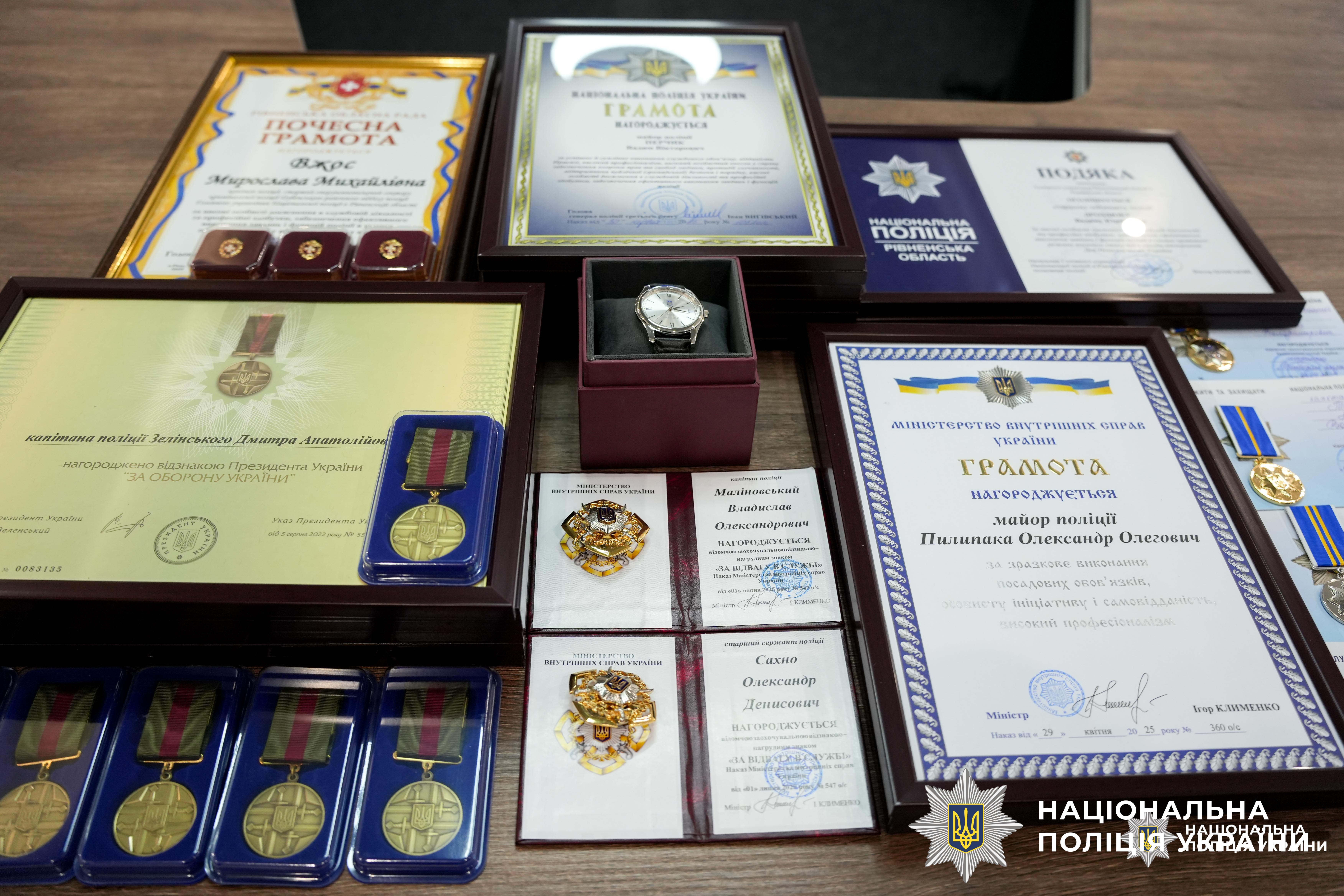 За сумлінне виконання службового обов’язку, вагомий особистий внесок у протидію злочинності та з нагоди відзначення державного свята начальник ГУНП в Рівненській області Віктор Шанський вручив поліцейським подяки, грамоти та відзнаки Міністерства внутрішніх справ, Національної поліції України, обласної та міської рад, ОК «Захід» та ГУНП в Рівненській області.