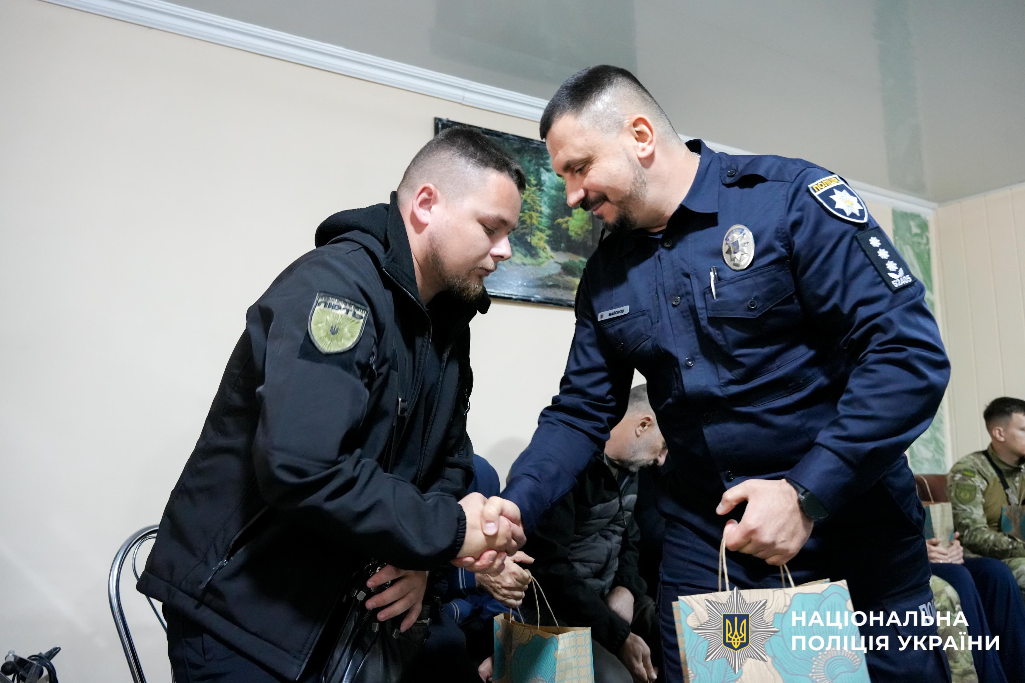Юрій Майоров подякував захисникам за патріотизм, відданість, сумлінне виконання службового обов’язку та від імені очільника поліції області Віктора Шанського вручив правоохоронцям гостинці.