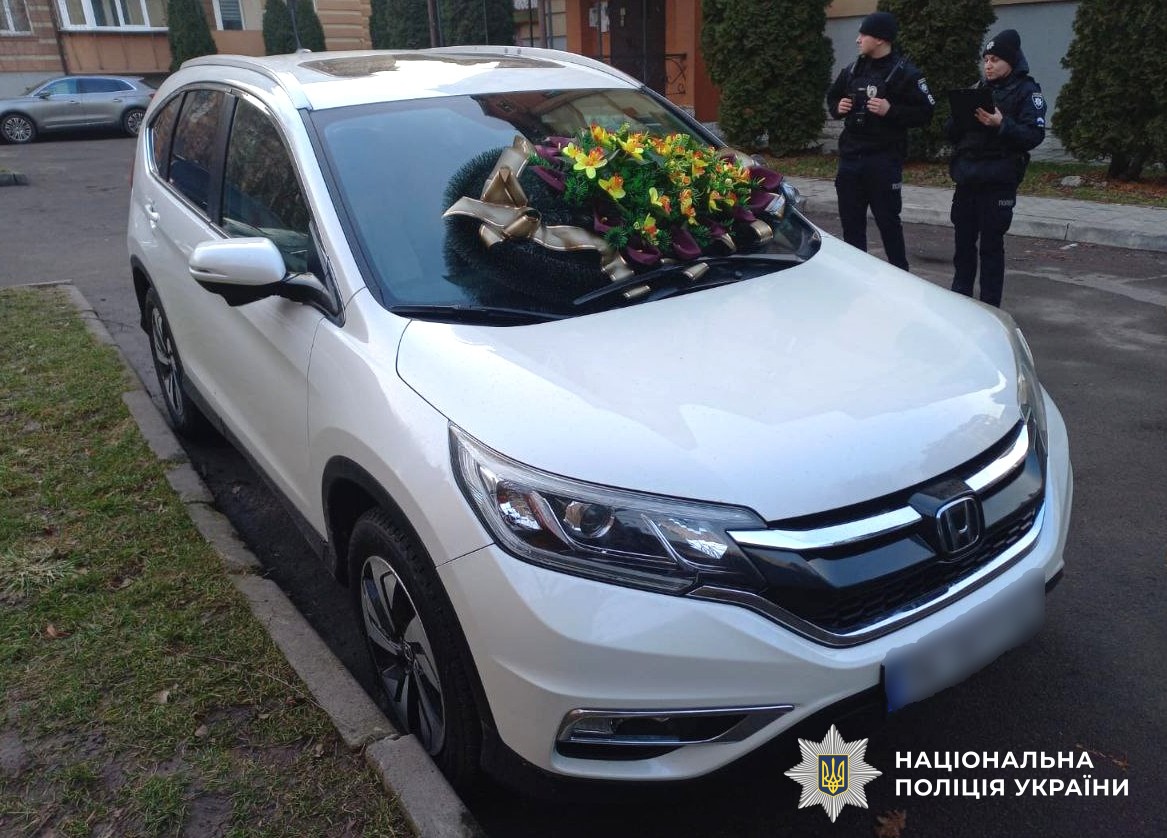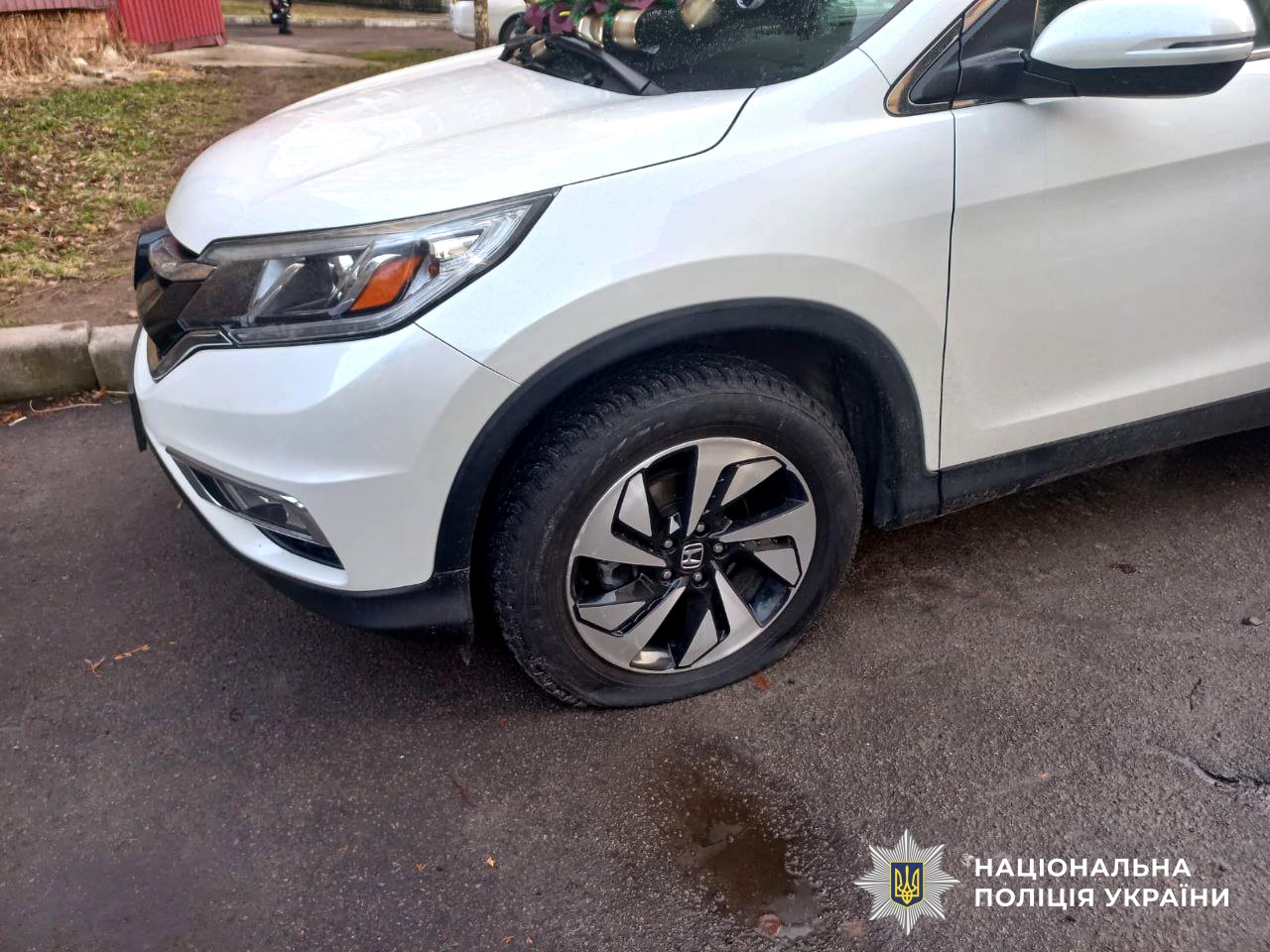 Учора, 12 лютого, на спецлінію 102 звернулась 37-річна підприємиця — жителька обласного центру, що близько 15 години вона виявила пошкоджені шини у своєму позашляховику «Honda CVR», а на капоті — траурний вінок.