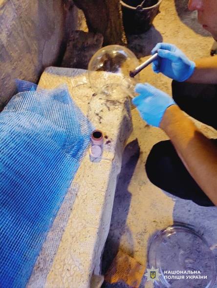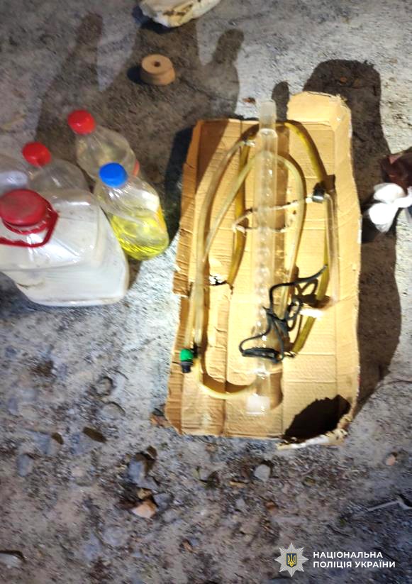 У рамках кримінального провадження у липні торік правоохоронці провели обшук, під час якого виявили дві полімерні пляшки з прекурсорами. Згідно з висновком експертизи — це соляна кислота та псевдоефедрин. Крім того, поліцейські вилучили обладнання для виробництва наркотичних засобів — кульковий лабораторний скляний холодильник.