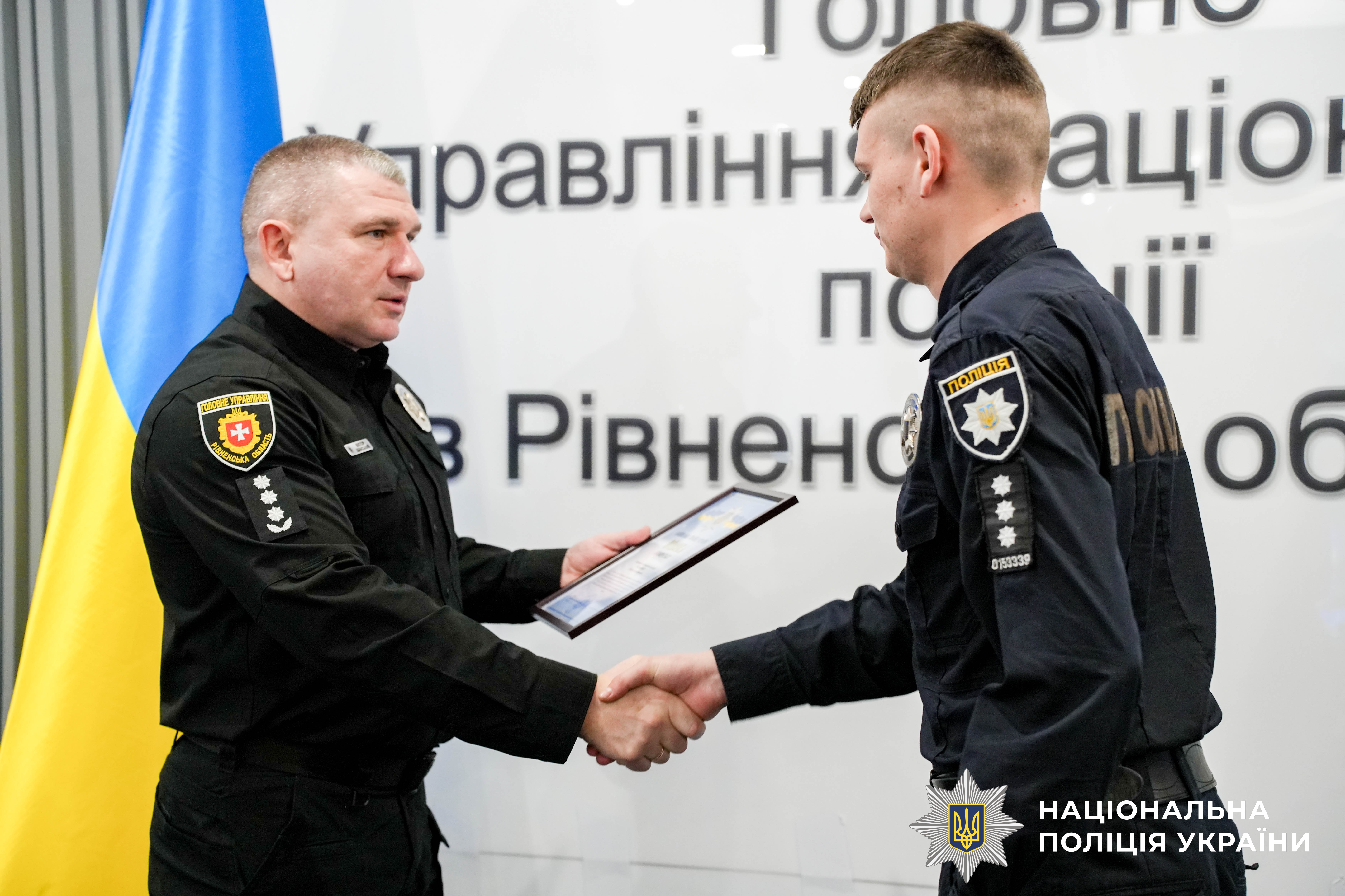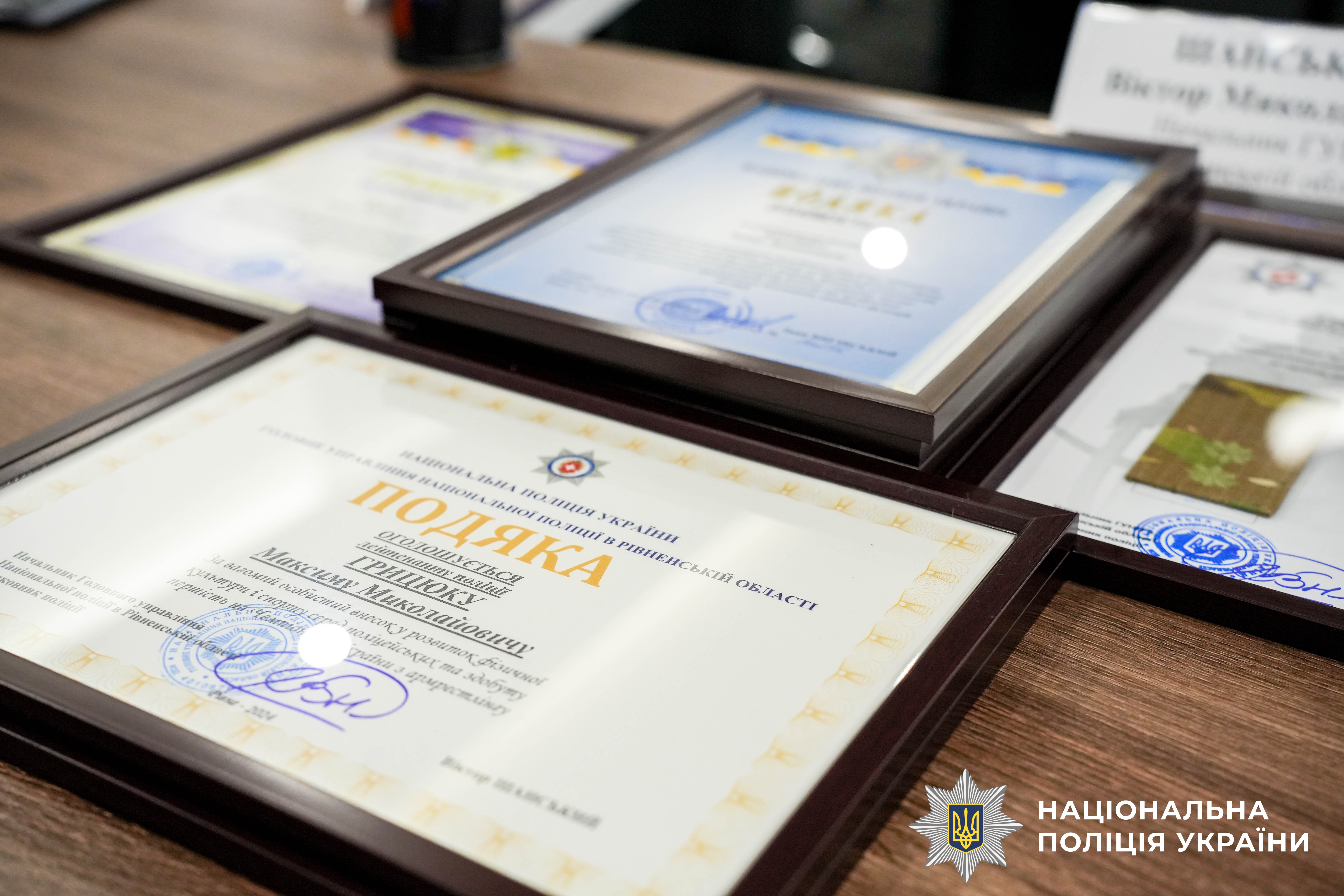 Також Віктор Шанський відзначив працівника Тренінгового центру ГУНП Станіслава Горковця, який проявив пильність і оперативність та у позаслужбовий час затримав рівнянина за грабіж бензопилки із вітрини магазину.