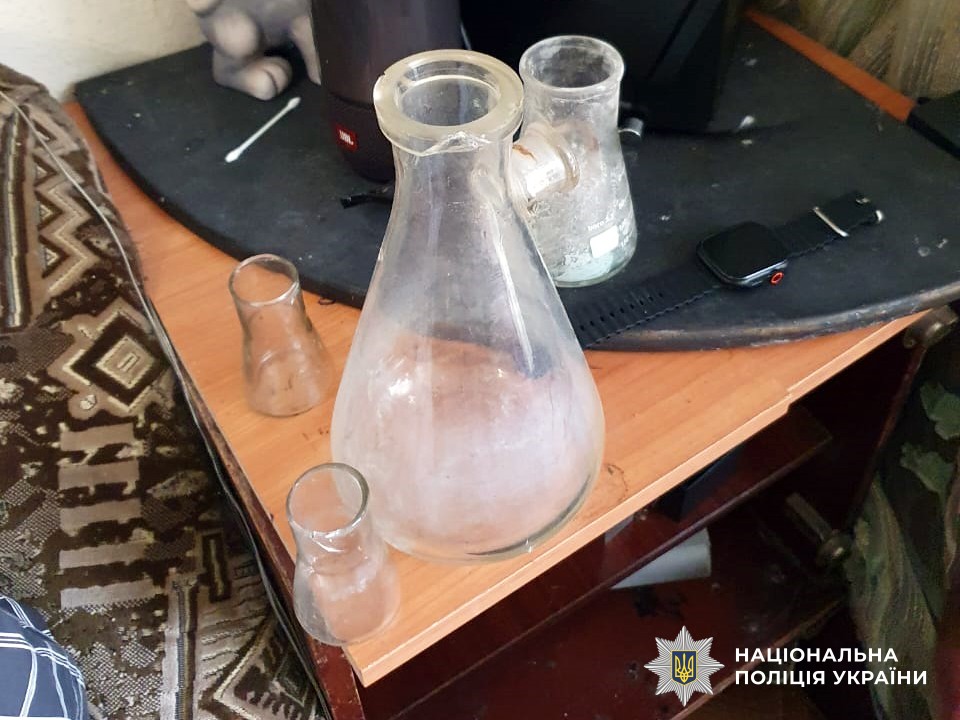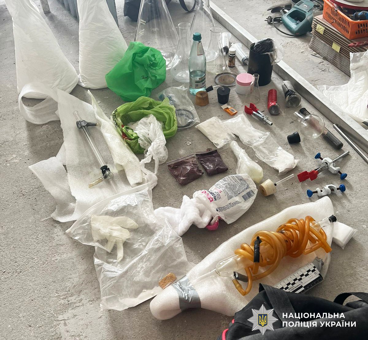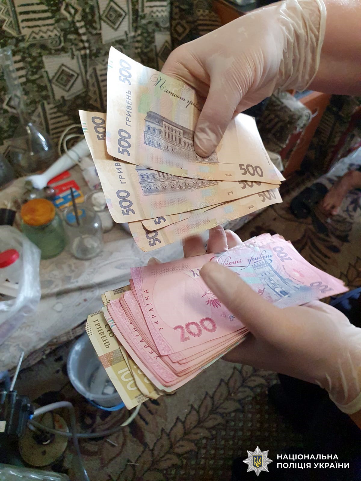Під час санкціонованих обшуків у фігурантів поліцейські виявили та вилучили лабораторне обладнання, метамфетамін, близько 10 кілограмів прекурсорів, понад 300 тисяч гривень у різній валюті, 49 банківських карток, чорнові записи, мобільні телефони фігурантів та інші суттєві докази.