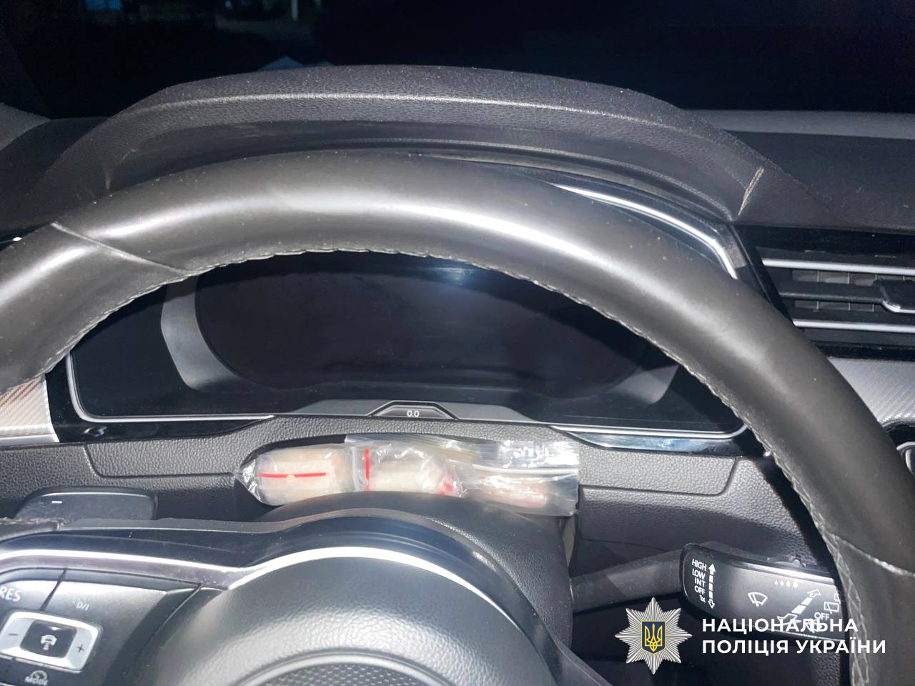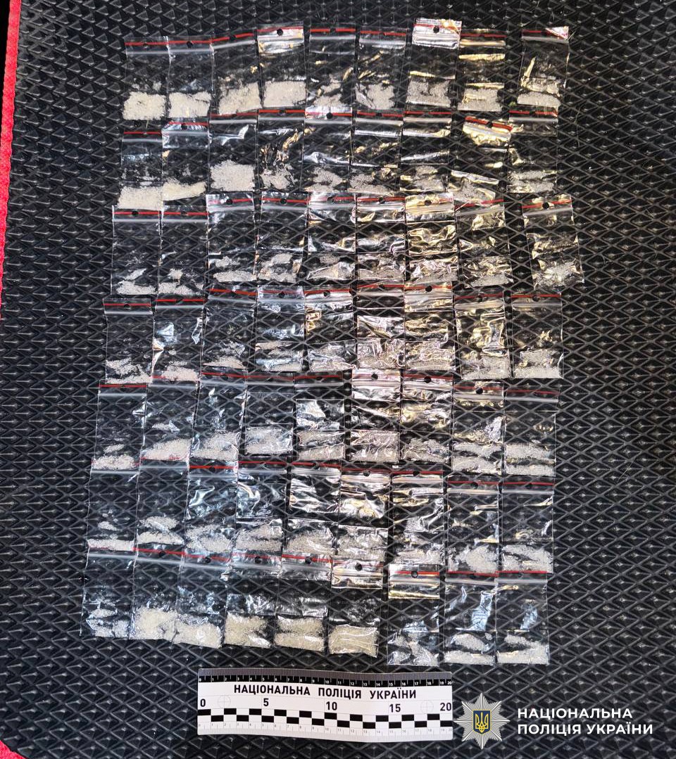 Під час обшуку його авто поліцейські виявили та вилучили 9 тисяч гривень та 63 сліп-пакети із метамфетаміном.