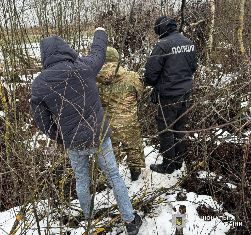 Під час слідчої дії чоловік зізнався, що йому на зберігання дав снаряд на початку січня малознайомий, який був у гостях. Заховав його спочатку на території господарства, а потім — відніс до лісу.