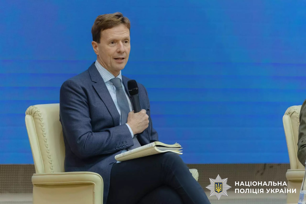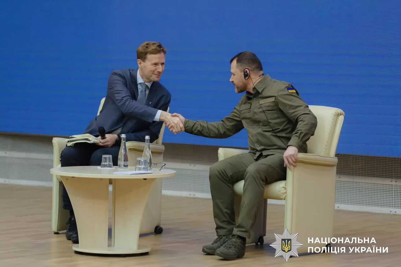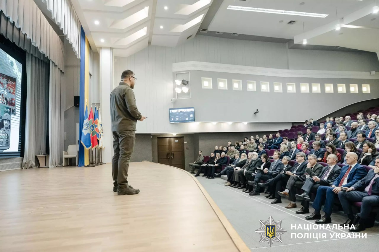 До гостей звернувся Міністр внутрішніх справ України Ігор Клименко, який детальніше розповів присутнім про розбудову нової архітектури безпеки України за допомогою органів системи МВС.