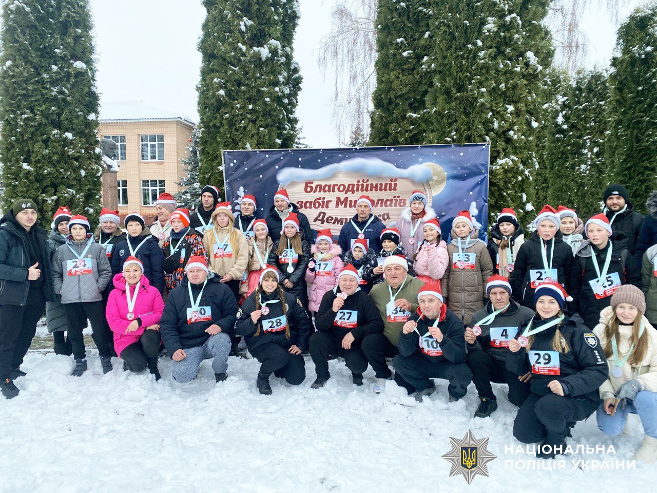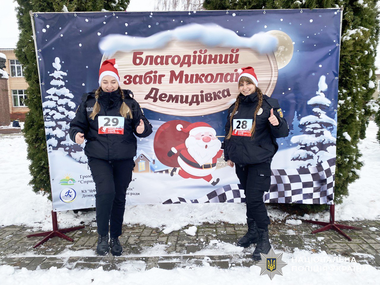 Сьогодні, шостого грудня, у селищі Демидівка відбувся благодійний забіг у День Святого Миколая. Долучилися до нього і ювенальна поліцейська відділення №1 (смт Млинів) Дубенського РВП та поліцейський офіцер Демидівської ТГ. Разом із іншими учасниками долали дистанцію у тисячу метрів.