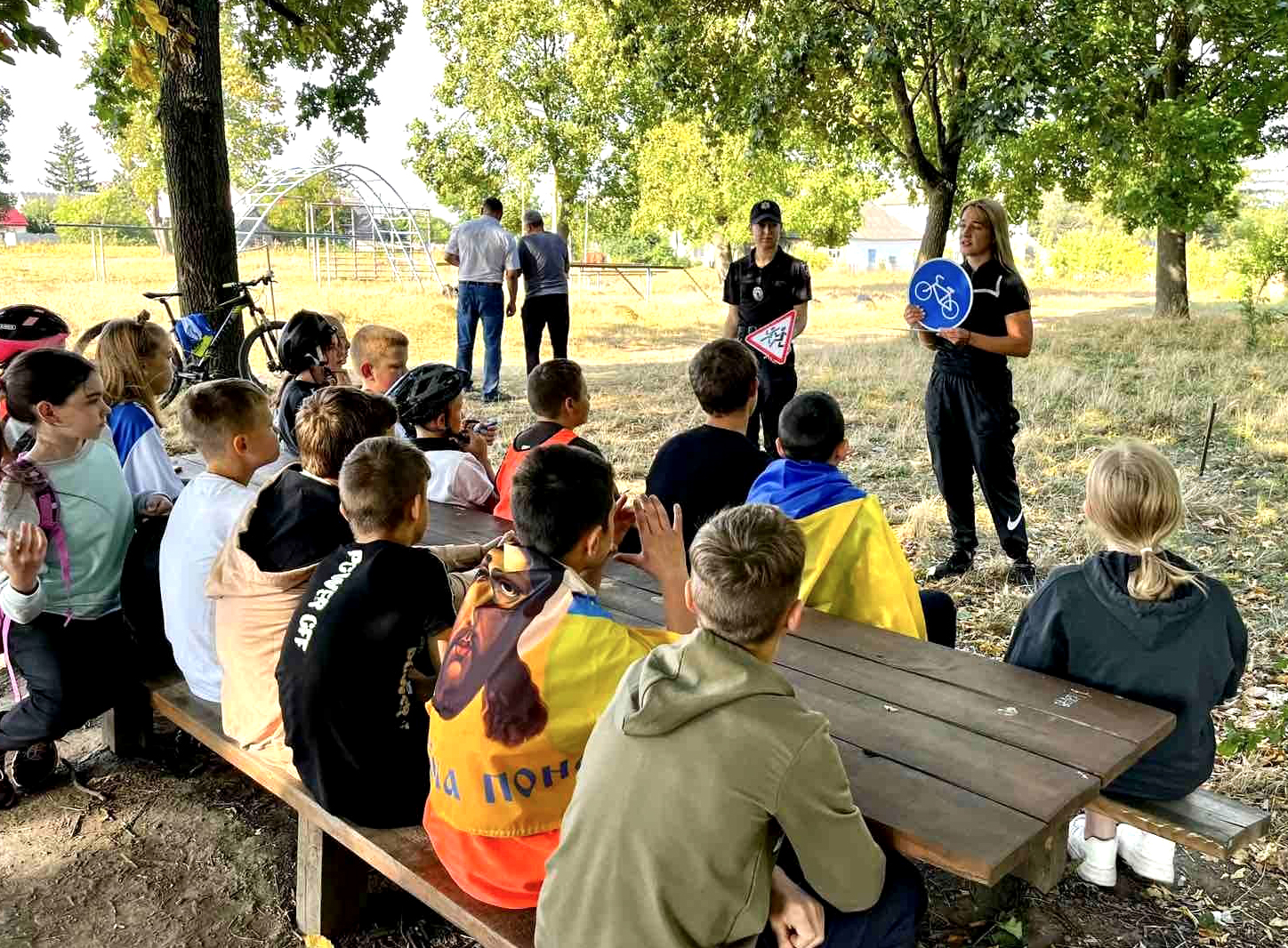 Інспекторка нагадала дітям правила дорожнього руху та їзди на велосипеді, роз’яснила, як саме має бути обладнаний двоколісний та яке екіпірування потрібно одягати, а також із якого віку дозволено рухатися проїзною частиною.
