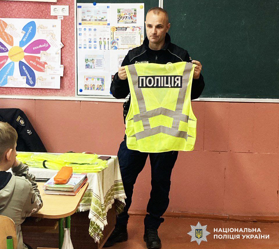 #Засвітись_у_темряві: поліцейські офіцери громад нагадують учням як важливо бути видимим у темну пору доби