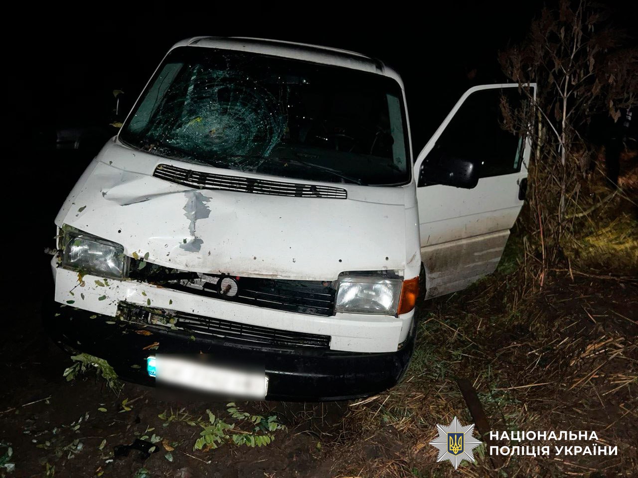 Поліцейські встановили, що 26-річний водій буса «Volkswagen Т4», перебуваючи у стані алкогольного сп’яніння, здійснив наїзд на пішохода, який ішов у попутному напрямку з велосипедом у руках. У подальшому — виїхав на смугу зустрічного руху, де допустив бокове контактування із автомобілем «Volkswagen Passat B6» під керуванням 29-річної водійки. Втім, після скоєного не зупинився та зник із місця події.