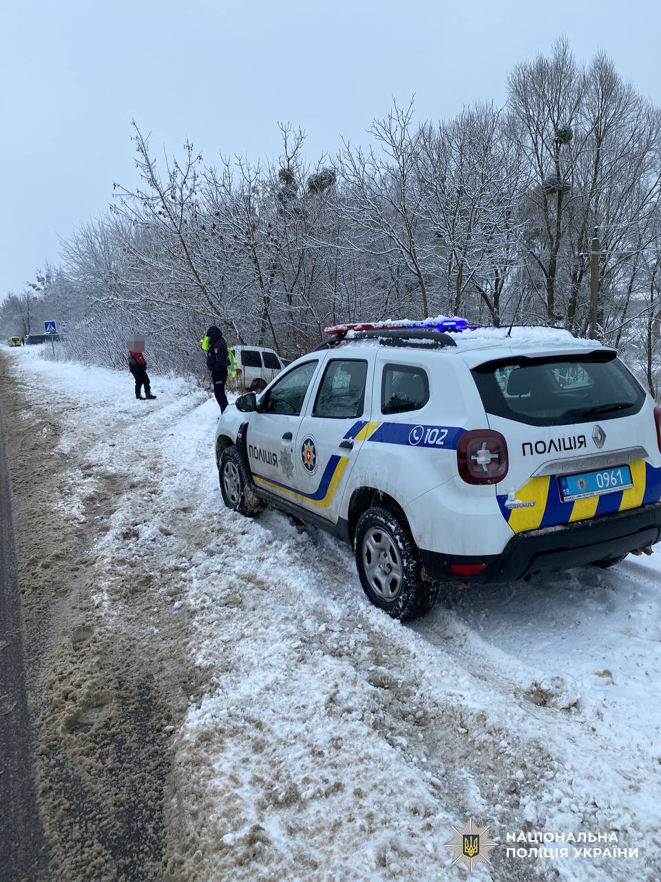 Так, сьогодні вранці неподалік Радивилова на узбіччя у чагарники занесло авто місцевого жителя, котрий повертався додому. Водія, який сам не міг нічому зарадити, виявив під час патрулювання поліцейський офіцер громади.