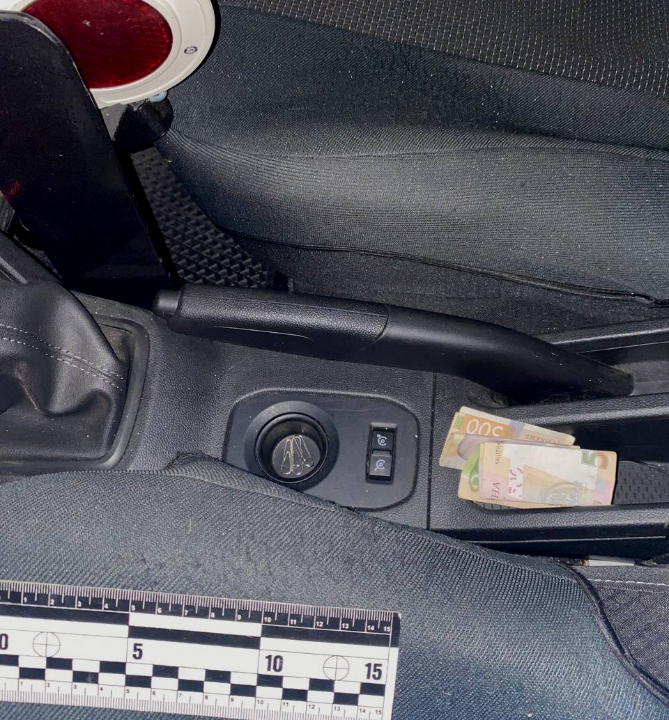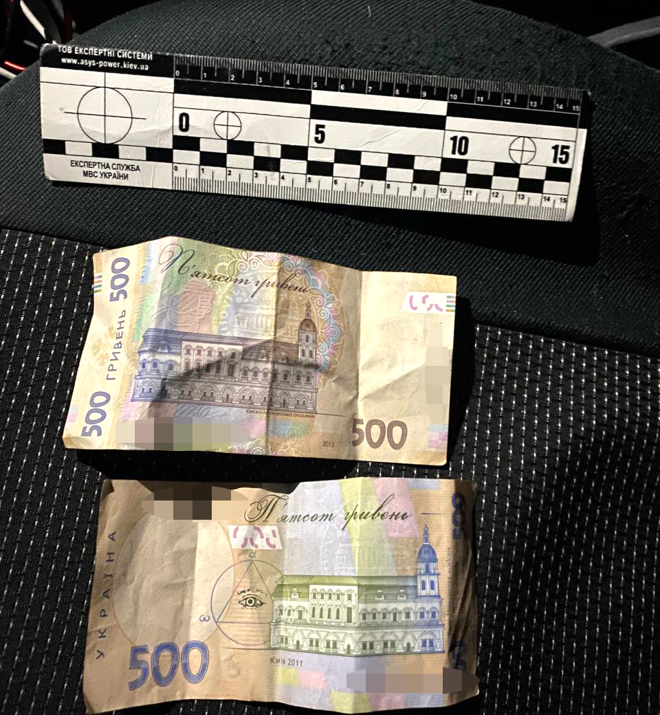 Неправомірні дії чоловіка зафіксувала нагрудна камера поліцейських. Слідчо-оперативна група вилучила дві купюри по 500 гривень.