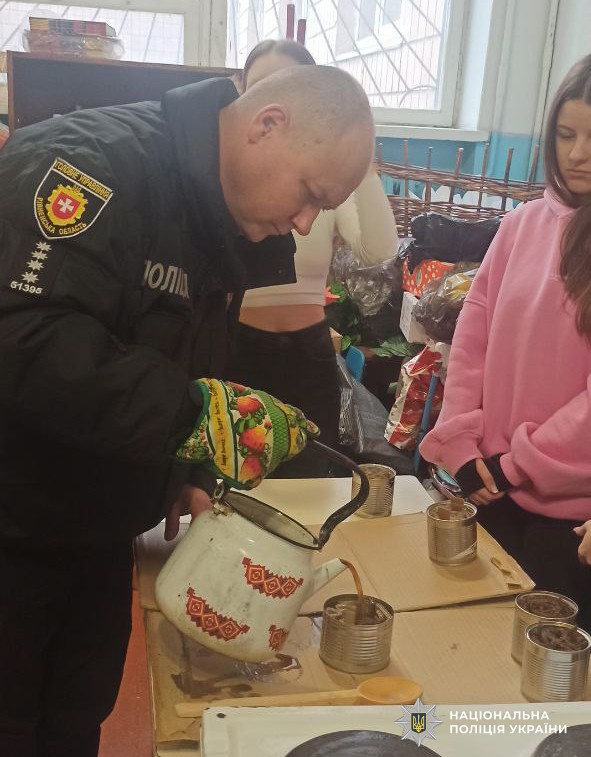 До справи долучився й поліцейський офіцер Рівненської ТГ: залучивши волонтерів, організував та доставив до навчального закладу консервні банки, картон, віск та парафін.