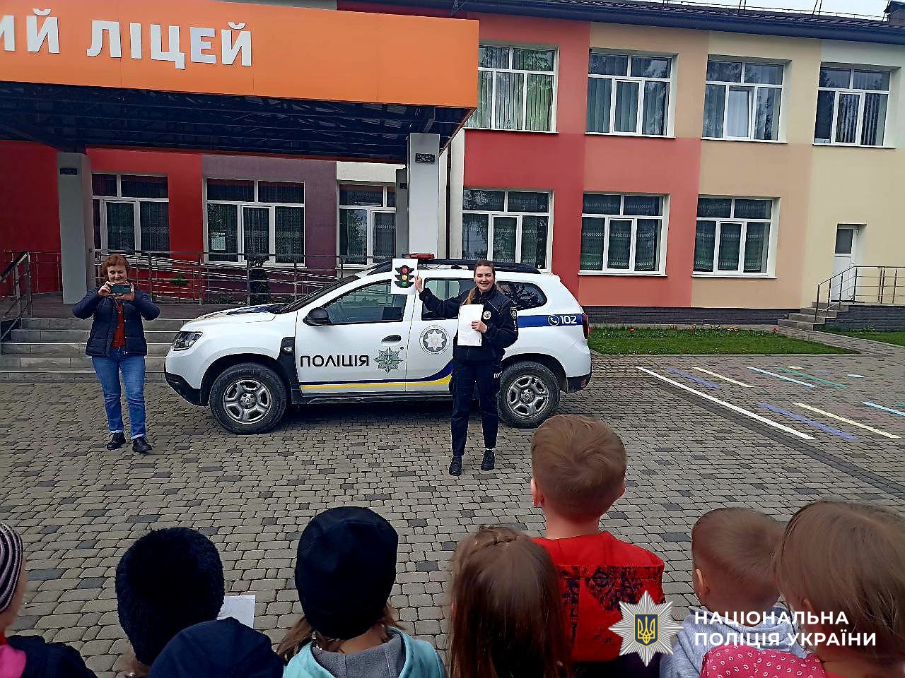 Упродовж тижня поліцейські офіцери громад та інспектори ювенальної превенції відвідували освітні заклади та проводили із малечею заняття: як правильно переходити проїзну частину, посадка та висадка зі шкільного автобуса, правила дорожнього руху, тощо.