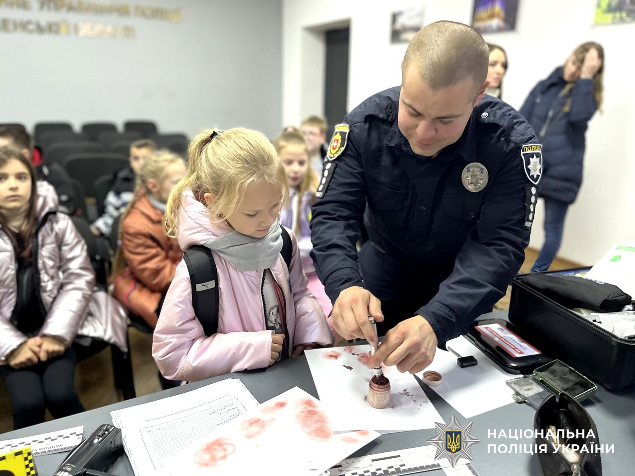 Ліцеїсти ознайомились із роботою кожного відділу, зокрема на власні очі побачили особливості документування слідів на місці злочину. Спеціаліст-криміналіст розповів про порядок їх вилучення та пакування, а бажаючі навіть вчилися знімати відбитки пальців.